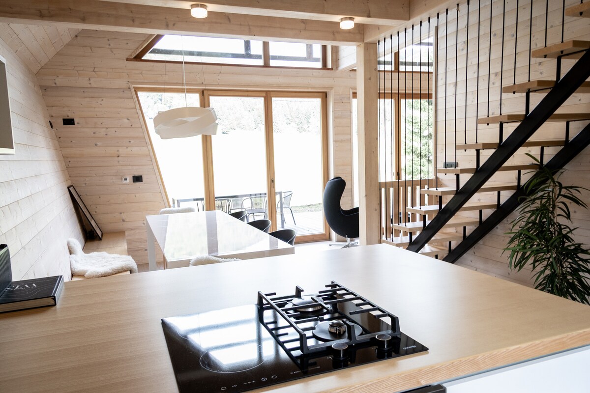 Maligayang pagdating sa Chalet Aurora, isang modernong dinisenyo na bahay sa gilid ng kagubatan, kung saan napapalibutan ka ng katahimikan at kapayapaan. Isang perpektong lugar para sa mga gustong lumayo sa kaguluhan ng pang - araw - araw na pamumuhay at makaranas ng nakakarelaks na pakikipag - ugnayan sa kalikasan. Pinagsasama ng tuluyan ang modernong estilo at kaaya - ayang kaginhawaan - isang kapaligiran kung saan mararamdaman mo kaagad na komportable ka. Ang Chalet Aurora ay perpekto para sa isang romantikong bakasyon para sa dalawa, isang weekend ng pamilya sa kalikasan o isang nakakarelaks na bakasyon kasama ang mga kaibigan. Makakakita ka ng kapayapaan, sariwang hangin, at lugar kung saan humihinto ang oras.