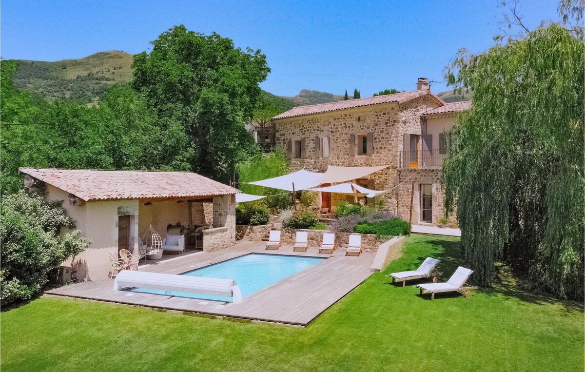 Ang perpektong pagtakas sa gitna ng Ardeche na may mga nakamamanghang tanawin sa lambak at maigsing lakad papunta sa mga sikat na lugar ng paglangoy sa nayon. Matatagpuan kaagad sa tabi ng malaking farmhouse, mainam ito para sa mga mahilig sa kalikasan na gusto ng kaginhawaan ng modernong pamumuhay. Mayroon itong sariling pasukan, hardin at hardin para sa alfresco na pagkain, sunning at star gazing. Ang mga ito ay maliit na mga hawakan tulad ng isang dishwasher vinyl record player at mga kagamitan sa mga mahilig sa kape 3 minutong lakad ang iyong sariling paradahan.