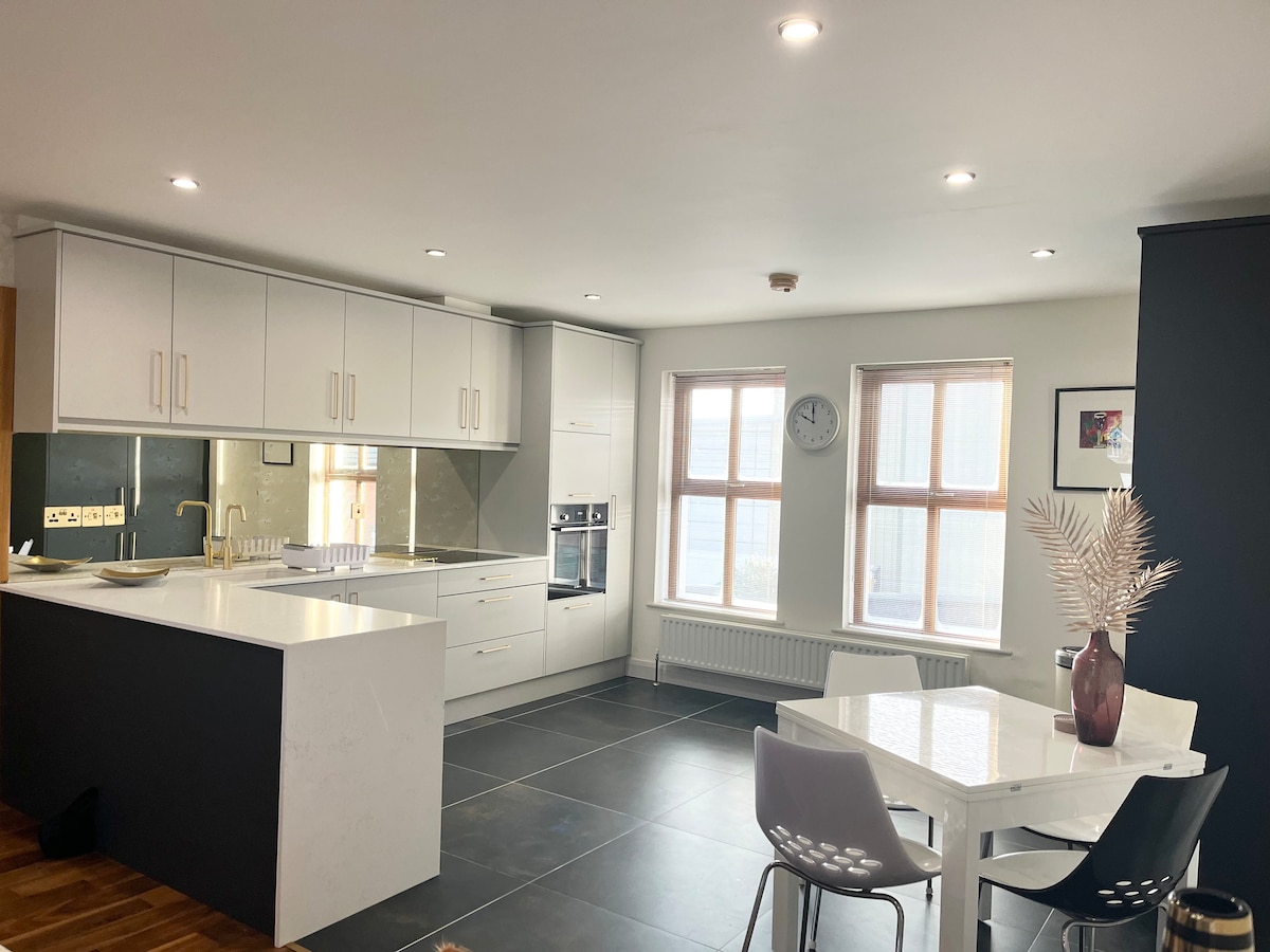 Bagong ayos, disenyo ng LED apartment sa North Coast area ng Northern Ireland. Isang naka - istilong 2 silid - tulugan na apartment na kamakailan ay sumailalim sa isang buong pag - aayos. Ang mga interior ay makulay at maganda na may kasamang kolektibong halo ng mga vintage designer furniture, lighting at bagay (karamihan ay mula sa kalagitnaan ng siglo). Ang lahat ng cabinetry/joinery ay bespoke at custom na ginawa sa site. Maluwag, maliwanag at maaliwalas ang apartment na tinatanaw ang magandang parke sa sentro ng bayan ng Coleraine.