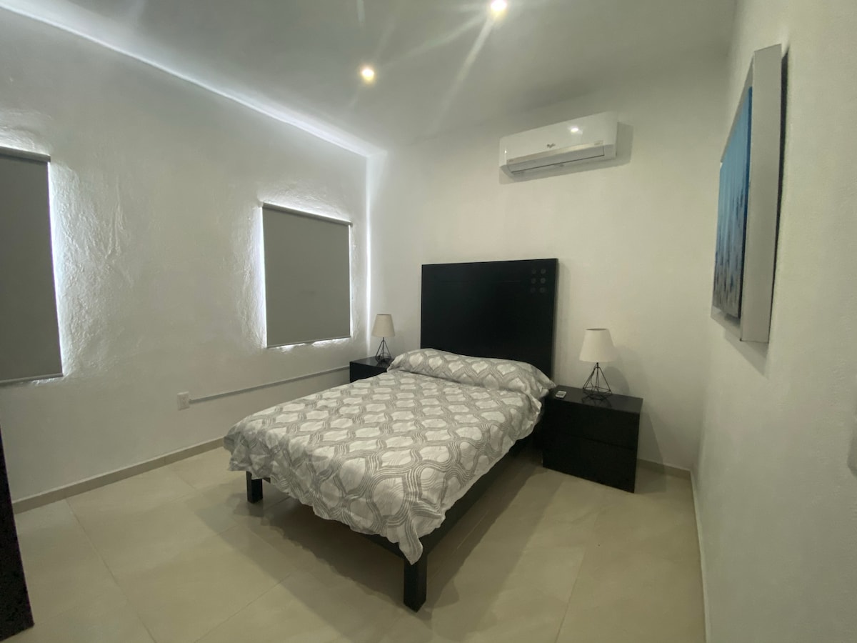 Casa completa de 2 habitaciones con Aire acondicionado y cocina completa y alberca La primer habitación tiene cama king size, aire acondicionado y baño completo. La segunda habitacion cuenta con cama queen aire acondicionado y vista al area de alberca, baño completo dentro de la habitacion. Sala amplia con tv, servicio de cable y app de streaming completa. Cocina equipada, comedor para 5 personas. Si requiere limpieza en el transcurso de su estancia tendra costó adicional