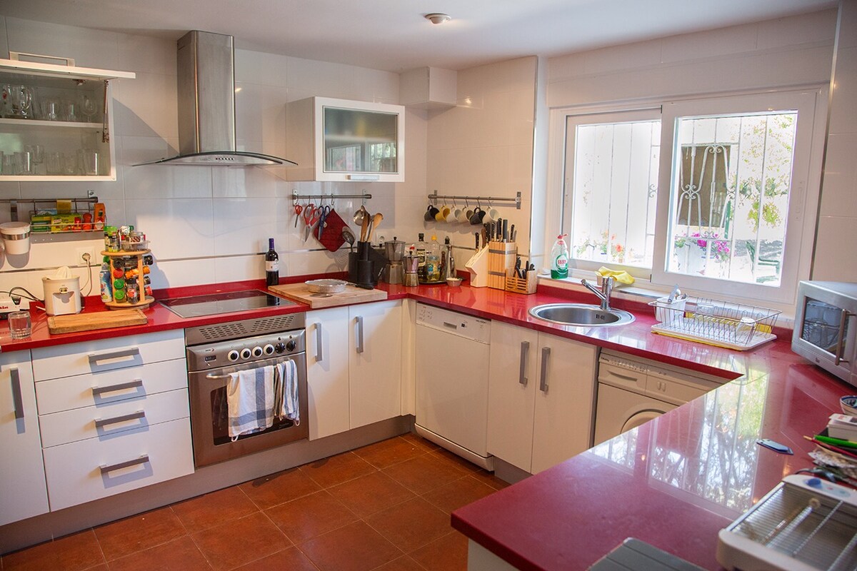 Es una casa de invitados situada dentro de la parcela donde esta la casa de los dueños.Consta de 2 habitaciones,salón con cocina americana y baño.El jardín,la barbacoa y la piscina son de uso común de huéspedes y dueños,pero nosotros respetamos la intimidad de nuestros inquilinos.Por motivos de trabajo prácticamente no estamos en casa a lo largo del día.Dentro de la casa NO se puede fumar y NO se aceptan mascotas sin consultar previamente con los dueños