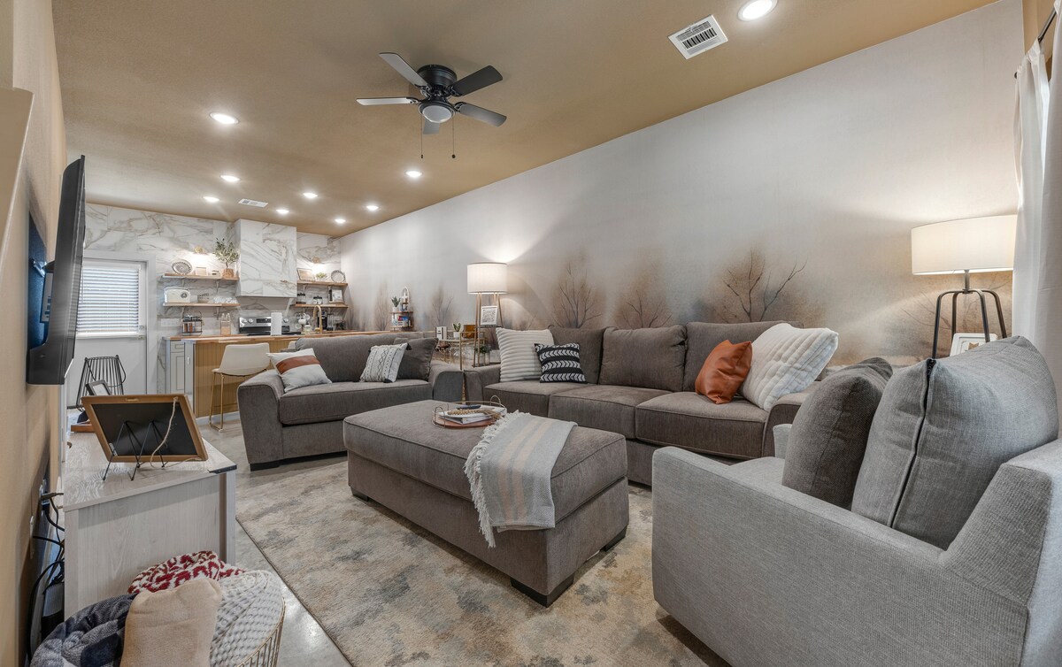 ✨ Mabilis na na‑book ang patuluyan namin kapag holiday at katapusan ng linggo kaya inirerekomenda naming magpareserba nang maaga para masigurong available ang mga petsa. Ang perpektong bakasyunan mo sa Aggieland! Hanggang 9 ang puwedeng mamalagi sa modernong ranch home na ito na may open layout, 85" na Smart TV, EV charger, mabilis na wifi, at kumpletong kusina. Ilang minuto lang ang layo sa Texas A&M, Baylor Scott & White Hospital, at Santa's Wonderland—angkop na tuluyan para sa mga pamilya, grupo, at biyahe sa araw ng laro. Permit para sa College Station STR #: STR2021 -000013