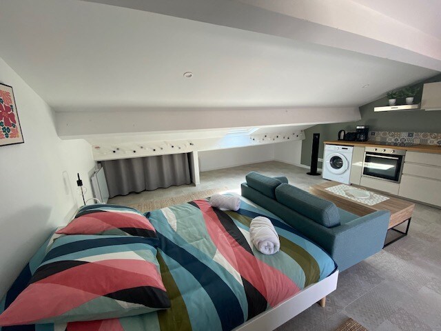 Maligayang pagdating sa iyong mapayapang daungan sa Provence! Tuklasin ang napakagandang studio na ito na may sukat na 35 m² na ganap na naayos at nasa ika‑3 palapag ng isang karaniwang bahay sa gitna ng Collobrières, isang tunay na Provencal Village na nasa gitna ng Massif des Maures (Var). May magandang 18m2 na terrace ang studio na may mga nakakamanghang tanawin ng kalikasan sa paligid—ang perpektong lugar para sa iyong mga almusal sa araw, aperitif sa paglubog ng araw, o mga gabing may bituin.