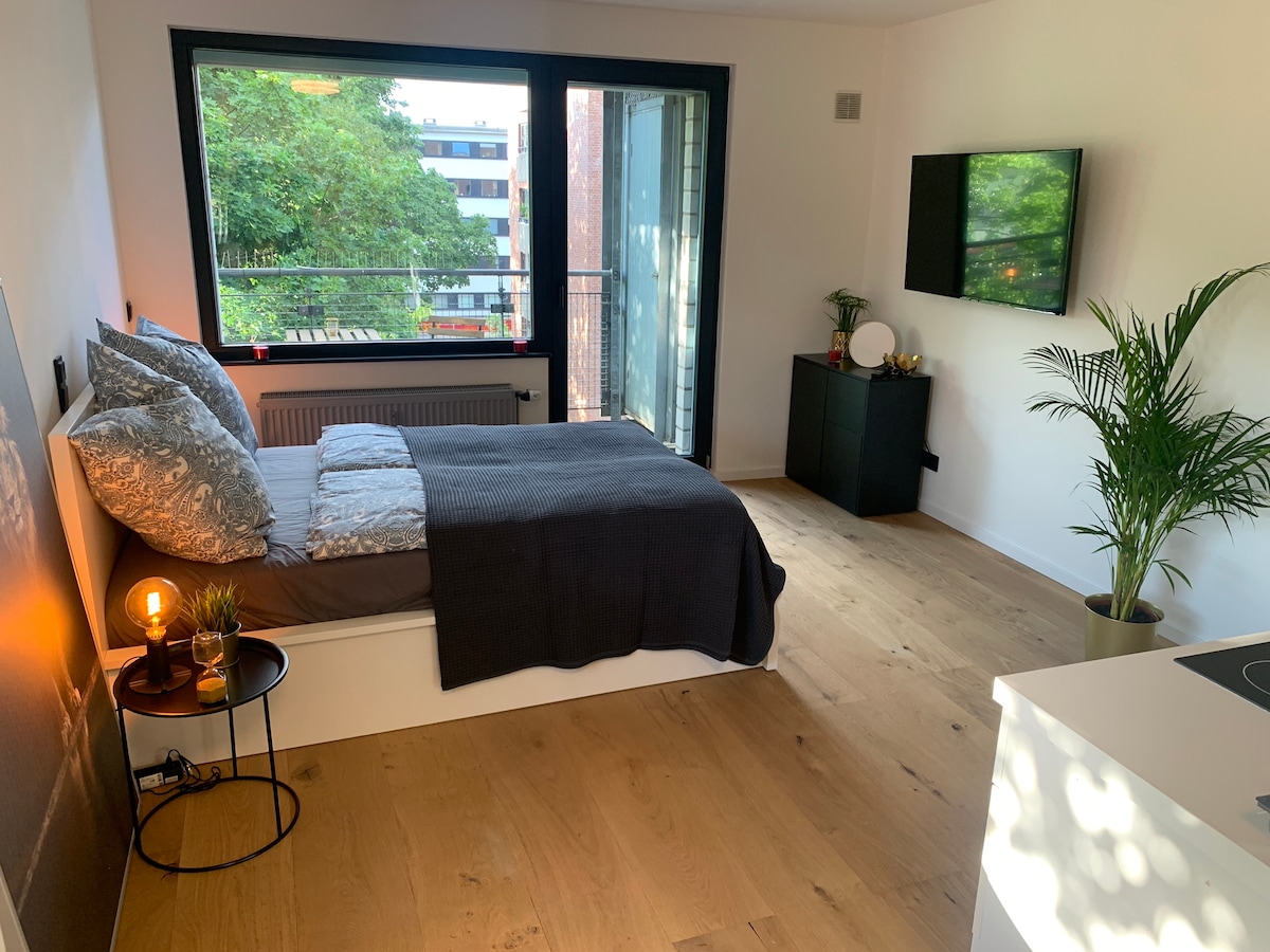 Bagong na - renovate! Maliwanag, moderno, at komportableng studio na may 2 kuwarto na may disenyo ng banyo at muwebles. Matatagpuan sa gitna at tahimik sa Kwartier Latäng. Kusina ay kumpleto sa kagamitan na may hiwalay na freezer, microwave, oven, washing mashine, dryer, Radio Bluetooth, Highspeed 500 Mbit WiFi, HD-TV, Bluray Player ay magagamit. Napapalibutan ng mga bar, munting teatro, sinehan, at supermarket na malapit sa Rudolfplatz at Belgisches Viertel, perpekto ito para sa maikling biyahe sa Cologne o para sa negosyo. 100% green electricity