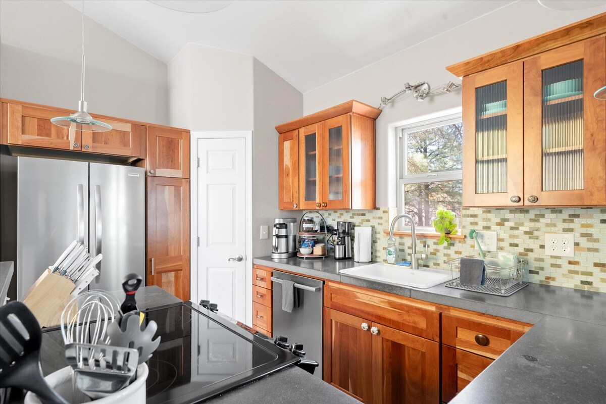 Masiyahan sa mapayapang bakasyunang ito na may mga tanawin ng isang mature na kagubatan at ng San Francisco Peaks! Ang usa at ang elk ay nagsasaboy sa libis sa labas ng bintana ng iyong silid - tulugan, at ang mga hummingbird ay umiinom ng nectar mula sa masaganang wildflower. Talagang espesyal na lugar ito! Gayunpaman, ang aming tuluyan ay nasa loob ng Flagstaff, kasama ang lahat ng amenidad nito: mga cafe, roaster, beer garden, at brewery. Hindi masyadong malayo sa amin ang Snow Bowl, Sedona, at GC, kasama ang maraming iba pang day trip hike at destinasyon. Gustung - gusto namin ang lugar na ito! Sumali sa amin!