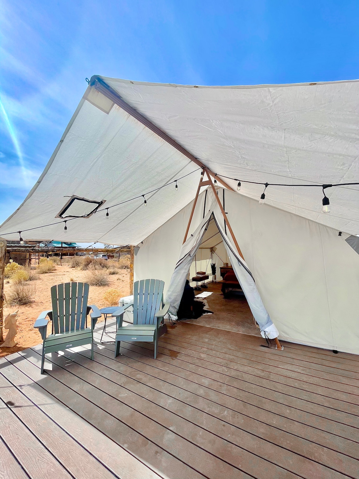 Tucked away in the quiet beauty of Arizona’s high desert, this spacious glamping tent offers the perfect balance of comfort and solitude. Surrounded by rugged red rock landscapes, towering saguaros, and endless open skies, it’s a place to truly disconnect and recharge. Inside, the tent features a cozy queen bed with soft linens, rustic furnishings, and thoughtful touches that blend modern comfort with desert charm. Step outside to your private deck and sip your morning coffee as the sunrise