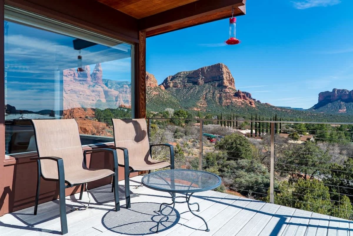 Tangkilikin ang mga marilag na tanawin ng sikat na Sedona Red Rocks sa karangyaan ng iyong sariling pribadong villa. Ilang hakbang ang layo mula sa iconic na Chapel of the Holy Cross, mga sikat na hiking trail. Nagtatampok ang bahay ng modernong aesthetic sa kalagitnaan ng siglo, 1 - KING size , 1 - Sofa bed na may 2 paliguan, 2 maluwang na sala, kusina, opisina, outdoor dining space sa BBQ. Pagkatapos ng isang araw sa disyerto, malayo lang, pumunta sa Downtown Sedona, ituloy ang mga hindi kapani - paniwalang art gallery at tuklasin ang mga lokal na restawran ! Tt# 21426328/ 1,800 Sq. Ft.