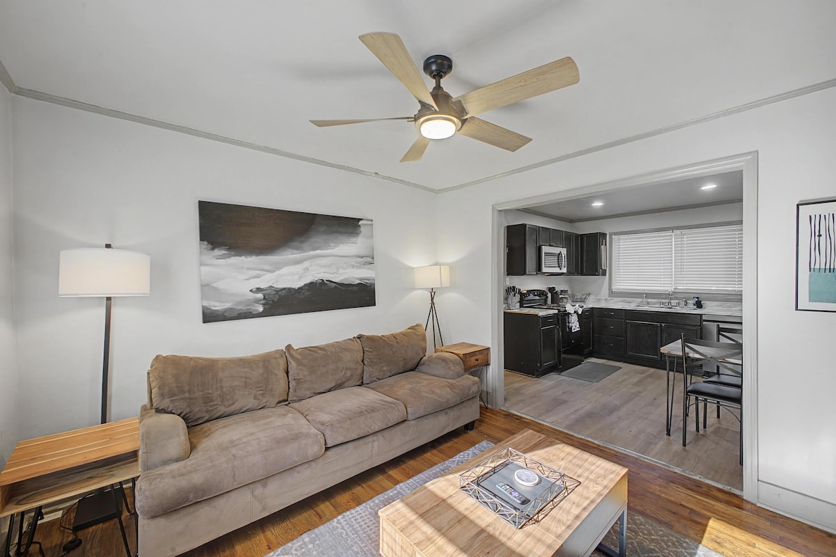 An unassuming cozy guest cottage. The space is comfortable 300 sqft and has all the essentials to make you feel at home. The cottage shares the same property with the main house. It has a full size bed with memory foam mattress. A full kitchen for those who would rather cook there own meals. A stocked coffee and wine bar. And a firepit sitting area just steps from the front door. There is also a full bathroom with a large ceramic tile shower with a bench seat.
