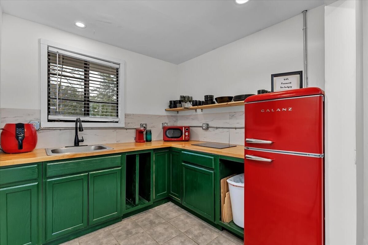 Isang hindi inaakalang maaliwalas na guest cottage. Komportable ang tuluyan na 300 sqft at mayroon ito ng lahat ng pangunahing kailangan para maging komportable ka. Ang cottage ay may parehong property sa pangunahing bahay. Mayroon itong full size bed na may memory foam mattress. Isang buong kusina para sa mga taong mas gugustuhin pang magluto doon ng sariling pagkain. Isang naka - stock na coffee at wine bar. At isang firepit na sitting area na ilang hakbang lang mula sa pintuan sa harap. Mayroon ding full bathroom na may malaking ceramic tile shower na may bench seat.