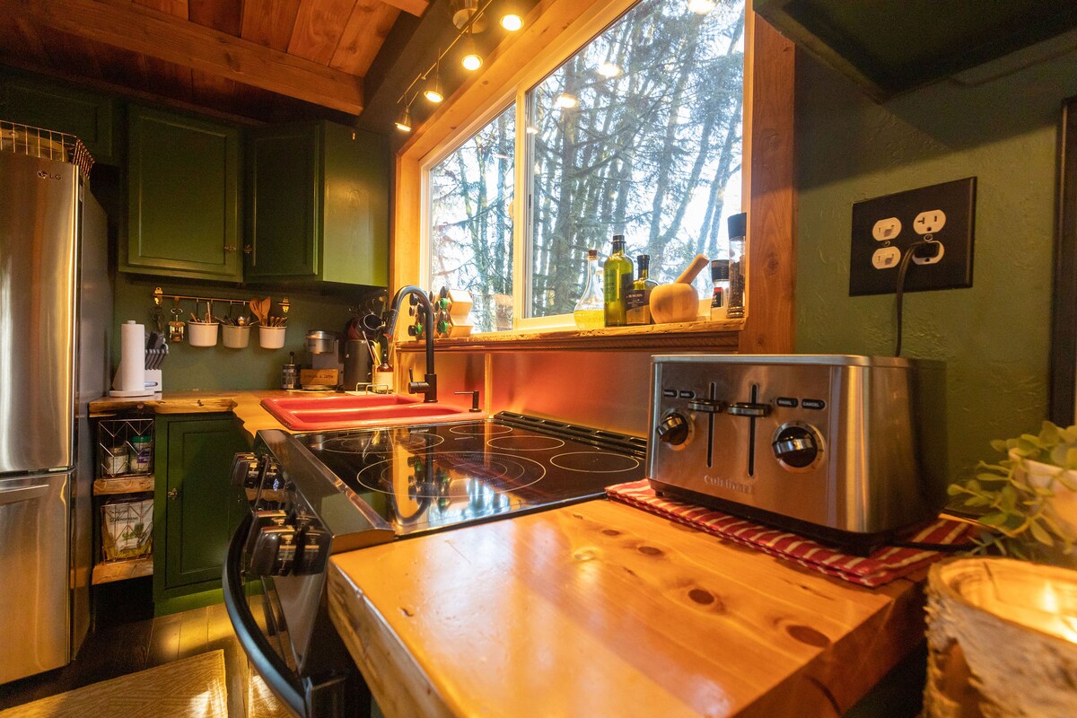 Maligayang pagdating sa iyong pinaka - di - malilimutang Airbnb! Matatagpuan ang natatanging handcrafted luxury cabin na ito, na itinayo ng isang team ng taga - disenyo ng asawa at asawa, sa tahimik na kakahuyan ng Clatskanie. Na umaabot sa 800 talampakang kuwadrado, nag - aalok ito ng inspirasyon, relaxation, at hindi malilimutang mga alaala. Itinampok sa ilang publikasyon ang cabin na may clawfoot tub na may tanawin ng kagubatan at Columbia River, mga bagong appliance para sa pagluluto sa bahay, Traeger grill, komportableng king-sized na higaan, malaking rustic na deck, at banyong may pinapainit na sahig.