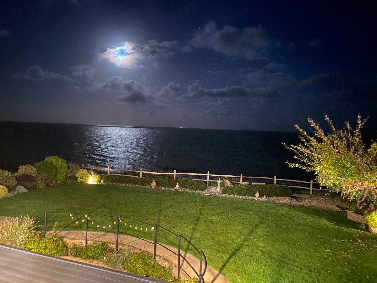 Napakaganda, maluwag, at nakaharap sa timog na flat na may mga nakamamanghang tanawin ng dagat, mga orihinal na tampok, at mataas na kisame. Nakakamangha ang pagsikat ng araw/paglubog at pagmuni - muni ng buwan! Sa pagitan ng St Leonards on Sea at Hastings, at 30 segundo papunta sa beach! May king size na higaan ang kuwarto at may double sofa ang sala. Ang higaan ay cotton/linen na hinuhugasan ng mga produktong hindi nakakalason. Nasa 3rd floor ang flat pero hindi ganoon karaming hagdan at dahil dito, malayo ang mga tanawin ng dagat sa madding crowd! May libreng paradahan sa malapit