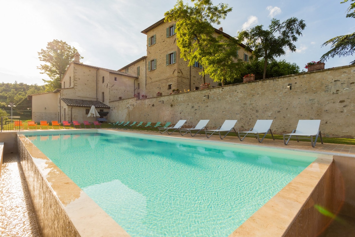 Welcome to our charming apartment in Fattoria Fontenovo in Umbria fresh hills !This cozy retreat at our historic Fontenovo Farm, owned by our family for over 100 years, offers the perfect blend of privacy and tranquility. Some areas of the spacious villa remain unoccupied and others are reserved for your use. During the stay, you'll be the sole occupants, apart from the owners who may occasionally be in another part of the house. Enjoy the lush gardens, private pool, and serene countryside.