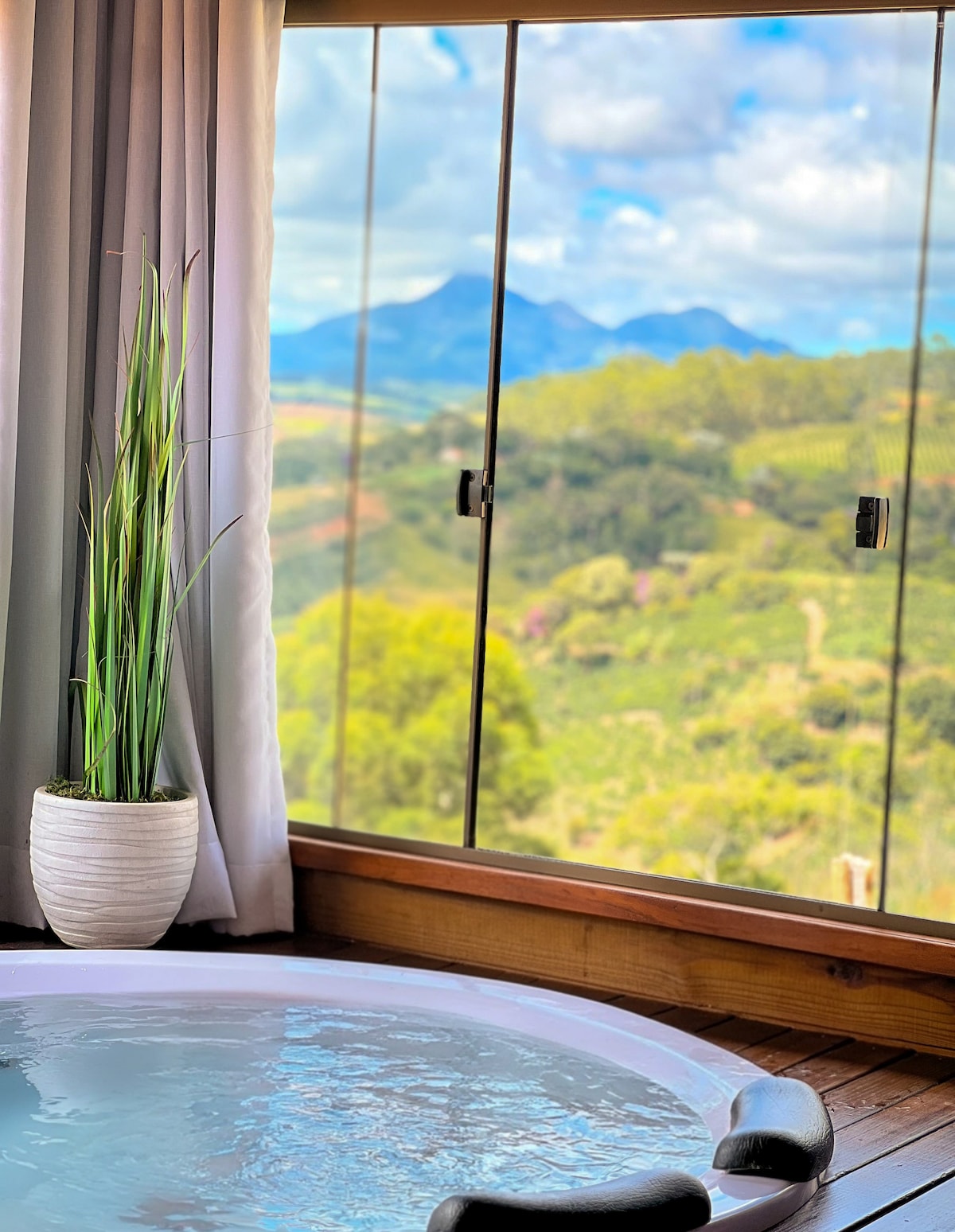 MABUHAY ANG KARANASANG ITO NANG MAY PRIBILEHIYO NA TANAWIN NG MGA BUNDOK!!! Cabana - style chalet, lahat ay may kumpletong kusina na may mga kagamitan, naka - air condition na fireplace at jacuzzi, mahusay na lokasyon para sa mga naghahanap ng PAHINGA at KAGINHAWAAN, na may lahat ng partikular na lugar para sa kanilang PRIVACY, MALAYO SA ANUMANG INGAY. Matatagpuan ang Chalés sa 5 km lang ng ASUL NA BATO at Novo DO IMIGRANTE, malapit sa ilang restawran, coffee shop, brewery at Agroturismo ng Rehiyon.