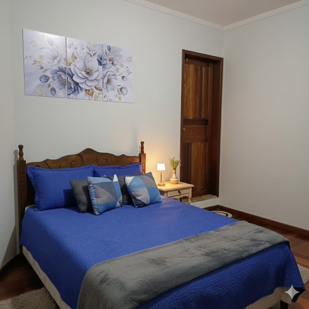 Maluwag at kumpletong bahay na may estilong kolonyal sa tahimik na kapitbahayan ng Conselheiro Lafaiete, 10 minutong biyahe lang mula sa downtown. Mainam para sa mga business trip, bakasyon, o grupo. May pribadong garahe, nakapaloob na hardin, at para sa mga kompanya, mga karagdagang warehouse at nakapaloob na espasyo na puwedeng paupahan.