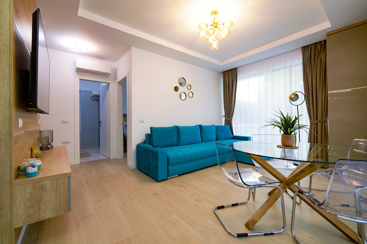 Bucură-te de o experiență minunata la Blue Luxury Apartment situat in complexul rezidential Lake On din Mamaia Apartamentul are balcon cu vedere la mare, dispune de mobilier si finisaje de lux si este utilat complet pentru confortul tau. In proximitatea apartamentului gasim Telegondola Mamaia, Aqua Magic, JT Water Sports . Se afla la 150 m de plaja.
