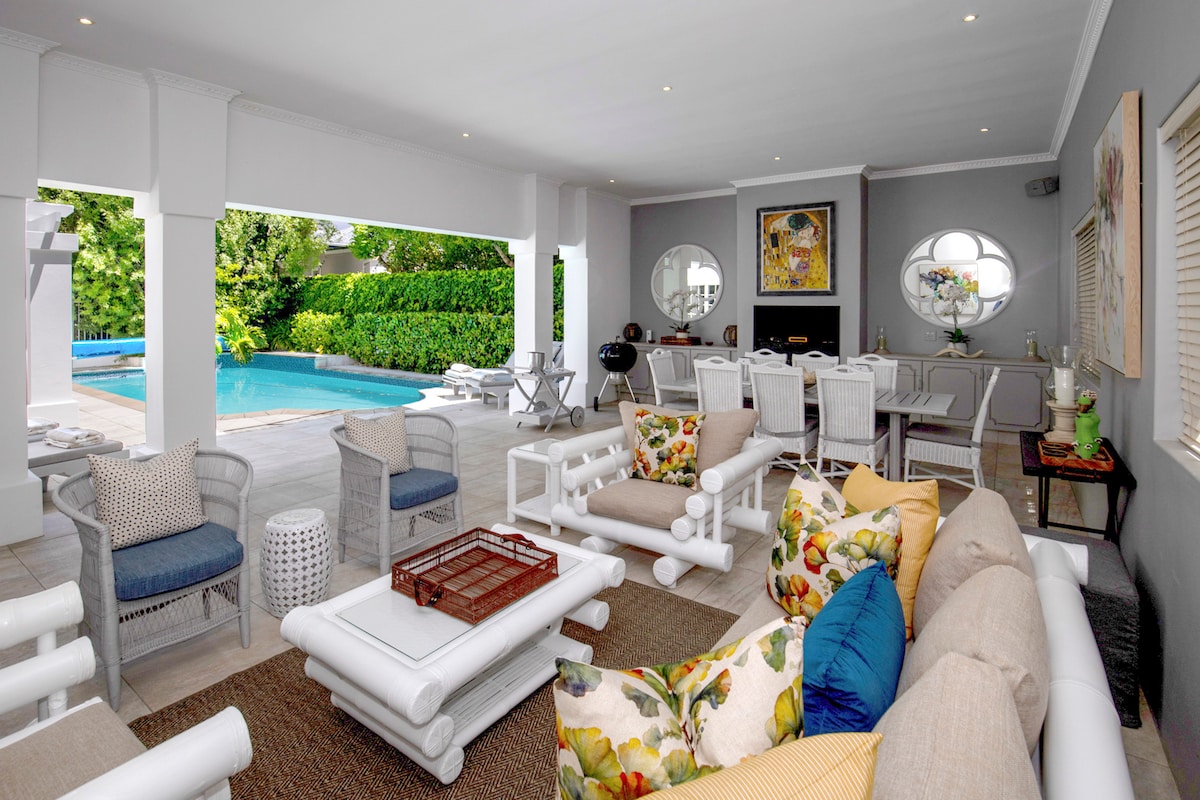 "Walang idinagdag na bayarin sa Airbnb sa presyong nakikita mo" Ang Constantia Klein Villa ay isang magandang self - catering na 4 na silid - tulugan na ensuite house na may pribadong swimming pool , malaking sakop na patyo at mga pasilidad ng BBQ. Napapalibutan ng katahimikan ng Groot Constantia, Buitenverwachting at Klein Constantia Wine Farms. Maglakad mula sa hardin papunta sa Groot Constantia Vineyards o sa Klein Constantia Wine Farm.