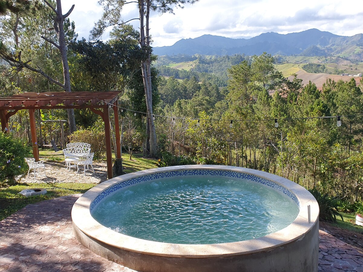 Inuupahan namin ang aming Ecological Vacation home sa magandang Dominican Republic, isang literal na paraiso sa mga bundok. Matatagpuan ito sa gitna ng isla na may 360 degree na tanawin ng mga nakapaligid na lambak, bundok, at tanawin. 15 minuto ang layo ng bahay mula sa bayan ng Constanza at dalawang oras mula sa Santiago Airport. Siyempre ito ay nilagyan ng 24/7 na kuryente, mainit na tubig, cable tv, at serbisyo sa internet, ngunit ito ay maganda ang kagamitan. Maaari itong tumanggap ng 20 magdamag na pakikipagsapalaran, dahil mayroon kaming limang malalaking silid - tulugan. May dalawang kusina at apat na buong banyo. Kung hindi man, ang bahay ay mayroong kapasidad na 150 tao, para sa kasal, kaarawan, at mga espesyal na kaganapan, lalo na kung isasaalang - alang ang aming pambalot sa mga porch at panlabas na patyo ay napakalaking. May hot tub/pool din kami para sa kasiyahan.