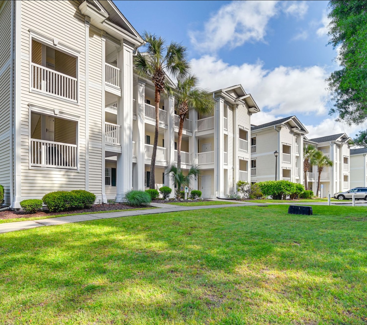 Relax and recharge in this quiet coastal 2-bedroom condo in Myrtle Beach. Perfectly located near golf courses and just minutes from the beach, dining, and shopping, this modern space offers comfort and calm in a peaceful community. Enjoy a shared outdoor pool, fully equipped kitchen, Smart TV, high-speed Wi-Fi, private balcony, free parking, and easy self check-in. Ideal for couples, small families, snowbirds, or a relaxing coastal escape.
