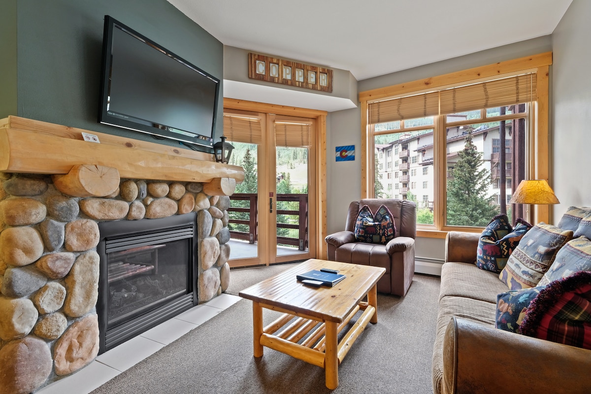 Here's your perfect spot to relax after a day skiing, biking, or otherwise exploring the mountain! This is a 1 bed, 1 bath unit with a private ground floor entrance. It is less than a 5-minute walk to the Quicksilver chairlift and Peak 9 base in downtown Breck. Kick up your feet up in front of a gas fireplace, or cook dinner in the full kitchen, before heading for a soak in the hot tubs or heading out to town.