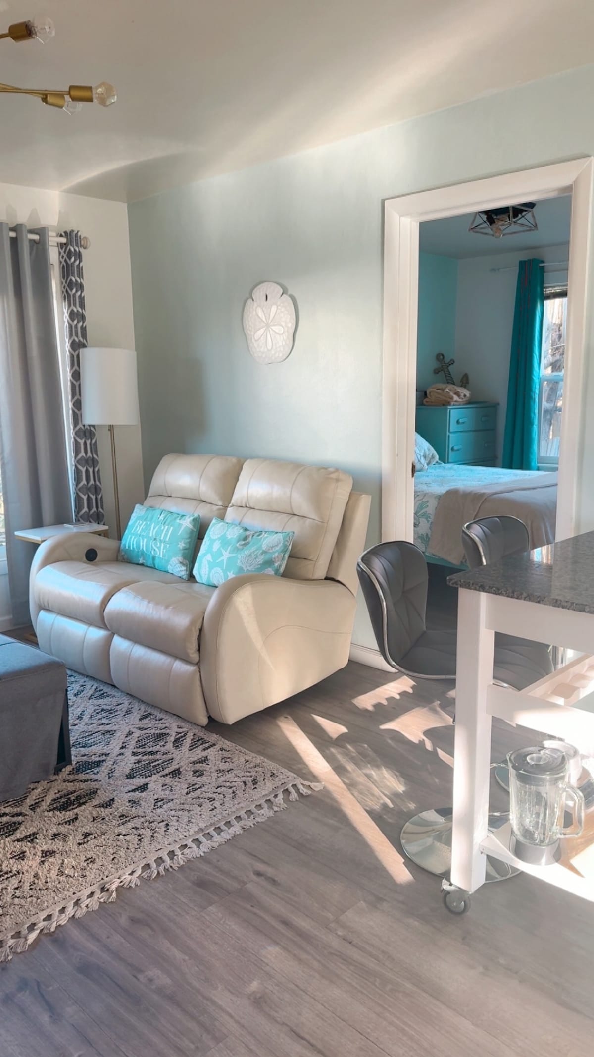 Idinisenyo ang kumpletong suite na ito na nasa unang palapag para sa mga bisita na may malalawak na tanawin para sa kaginhawaan at kaginhawaan, para sa maikli man o mahabang pamamalagi. Sa 800 square feet, nagtatampok ito ng malinis, open-concept na layout, mga pinag-isipang kagamitan, at mga in-suite na pasilidad sa paglalaba, na nagpapadali sa pag-ayos. May dalawang malaking sliding glass door na bumubukas papunta sa deck na may mga upuan sa labas at tanawin ng Bay na ikinatutuwa ng mga bisita. May komportableng upuan, smart TV na may gulong para sa flexibility, at workspace sa sala.