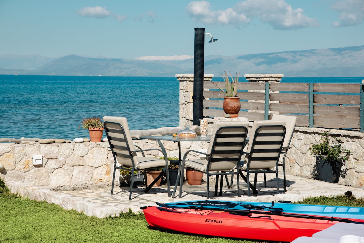 Thalassa beach house - naka - istilong, moderno at kanan sa dagat Hanggang 5 bisita, 2 double bedroom, 1 pang - isahang kama, 2 banyo Smart at bukas na plano, ang Thalassa beach house ay nasa beach lamang sa Coyevinas Bay. Makikita sa isang tahimik na hardin ng mga puno ng orange at lemon, ang mga ubas, igos at olive ay nag - aalok ito ng perpektong hideaway holiday para sa mga mag - asawa o maliliit na pamilya. Malapit lang ang sikat na Avlaki beach na may paaralang naglalayag at dalawang tavernas. 7 minuto lang ang layo ng mga tindahan,bar, at restaurant ng Kassiopi.