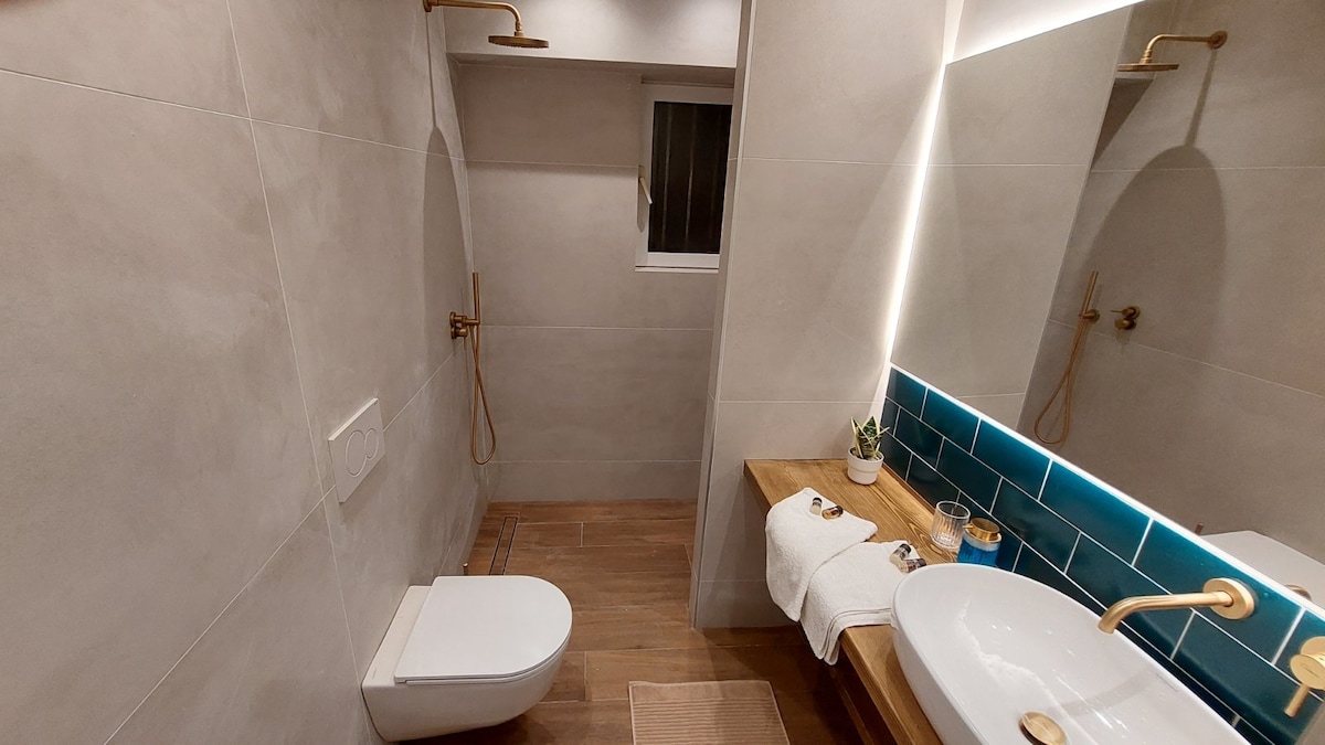 Maliit ngunit kamangha - manghang komportableng apartment na may tanawin ng kagubatan at bundok na nagpaparamdam sa iyo na parang nasa kampo ka pero may lahat ng kaginhawaan. Sa ikalawang palapag ng bagong itinayong modernong bloke ng mga flat, makikita mo ang relaxation na kailangan mo.