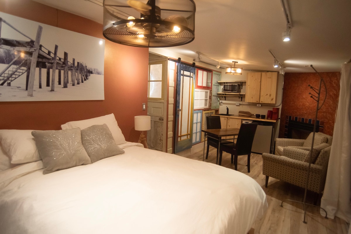Maganda ang lahat ng panahon dito! Lalo na sa pinakamagandang lugar sa Saskatoon. Ang patuluyang ito na humigit‑kumulang 250–300sf ang laki ay walang katulad at nasa pinakalumang kapitbahayan sa Saskatoon. Maupo sa dalawang komportableng upuan malapit sa gas fireplace o magpahinga sa higaang may duvet habang nanonood sa 50" TV. Matatagpuan sa gitna ng lungsod, may 15 lakad ang layo mula sa downtown, Broadway, live na teatro, at maraming world - class na restawran. Isa itong tuluyan na hindi mo gugustuhing umalis.