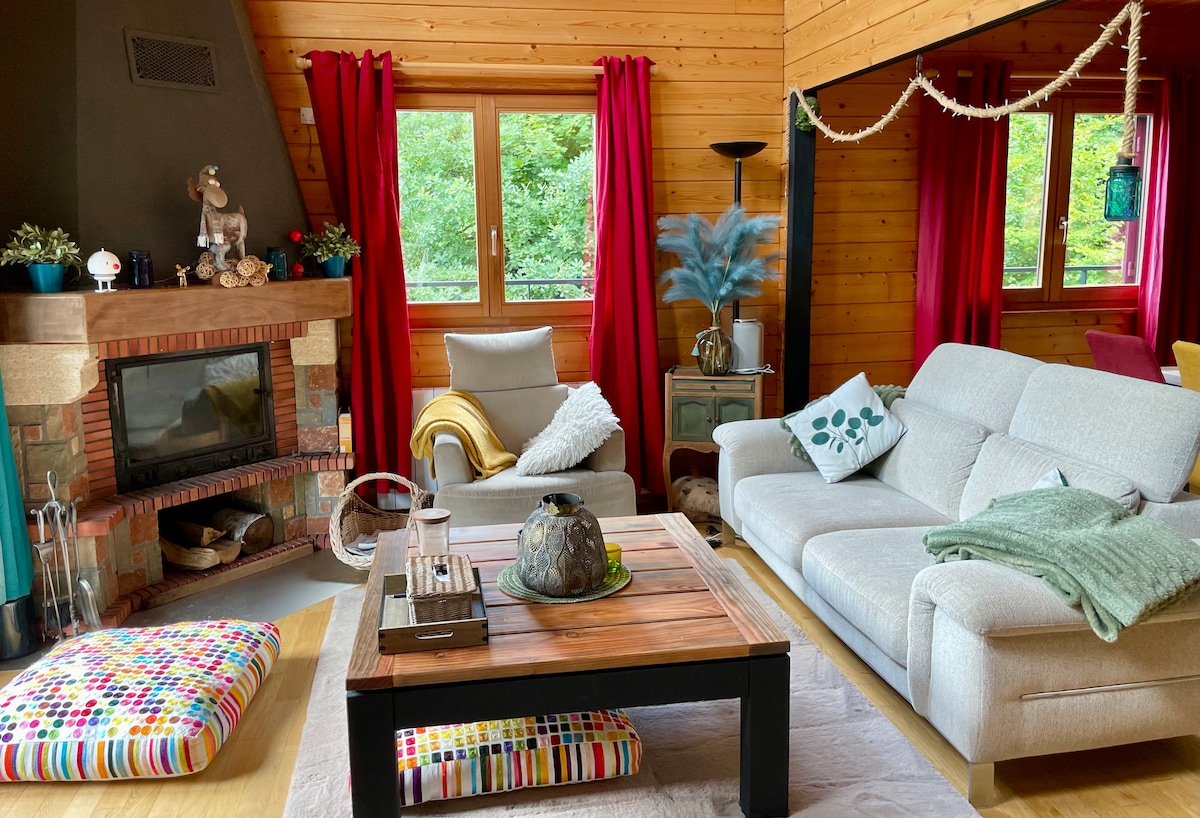 Sa gitna ng Hautes Vosges, sa isang berdeng setting at nang walang anumang overlook, Halika at tuklasin ang mapayapang lugar na ito, tiyak na tatawid ka sa usa, usa at squirrels. Chalet na binubuo sa unang palapag : Magandang maliwanag na sala, maaliwalas na may fireplace (kahoy ang iyong pagtatapon), kusinang kumpleto sa kagamitan. Sa itaas ng dalawang silid - tulugan, isang mezzanine na may TV area at banyo. Sa mas mababang antas, silid - tulugan, banyo, palikuran. Basahin ang gabay sa aming mga paboritong lugar at ang gabay sa tuluyan.
