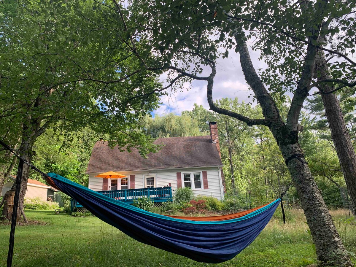 Tangkilikin ang mapayapang pag - urong sa cottage, o gamitin bilang home base para sa pagtuklas sa Catskills. Pampamilya, pribadong 4 na higaan, sa isang liblib na 6.4 acre na property. Mag - enjoy sa kape sa deck. Mag - ihaw ng hapunan at magtipon sa mesa ng piknik. Magbasa sa isang kumot o lounge chair sa maluwag na pribadong damuhan. Magrelaks sa pamamagitan ng campfire sa gabi sa fire pit. Tangkilikin ang fireplace sa sala, maglaro ng mga board game, mag - stream ng pelikula. O pumili ng mas aktibong pakikipagsapalaran sa Catskills! I - explore ang mga butas para sa hiking at swimming area.
