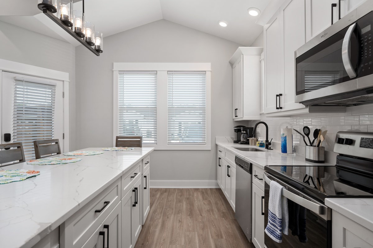 Pinalamutian nang maganda at maaliwalas na cottage na may LAHAT ng amenidad sa beach na maaaring gusto ng iyong puso - mga upuan, float, bisikleta, rolling cart, boogie board, kayak, mga laruang buhangin, ihawan, atbp. Ilang bahay lang ang layo ng pribadong oceanside beach access, 1/2 basketball court, WiFi, libreng paradahan, access sa mga kalapit na daanan ng bisikleta at shopping, kayaking, magagandang tanawin, at marami pang iba! Ang Duck, NC ay ang pinaka - perpektong bahagi ng OBX para magbakasyon!