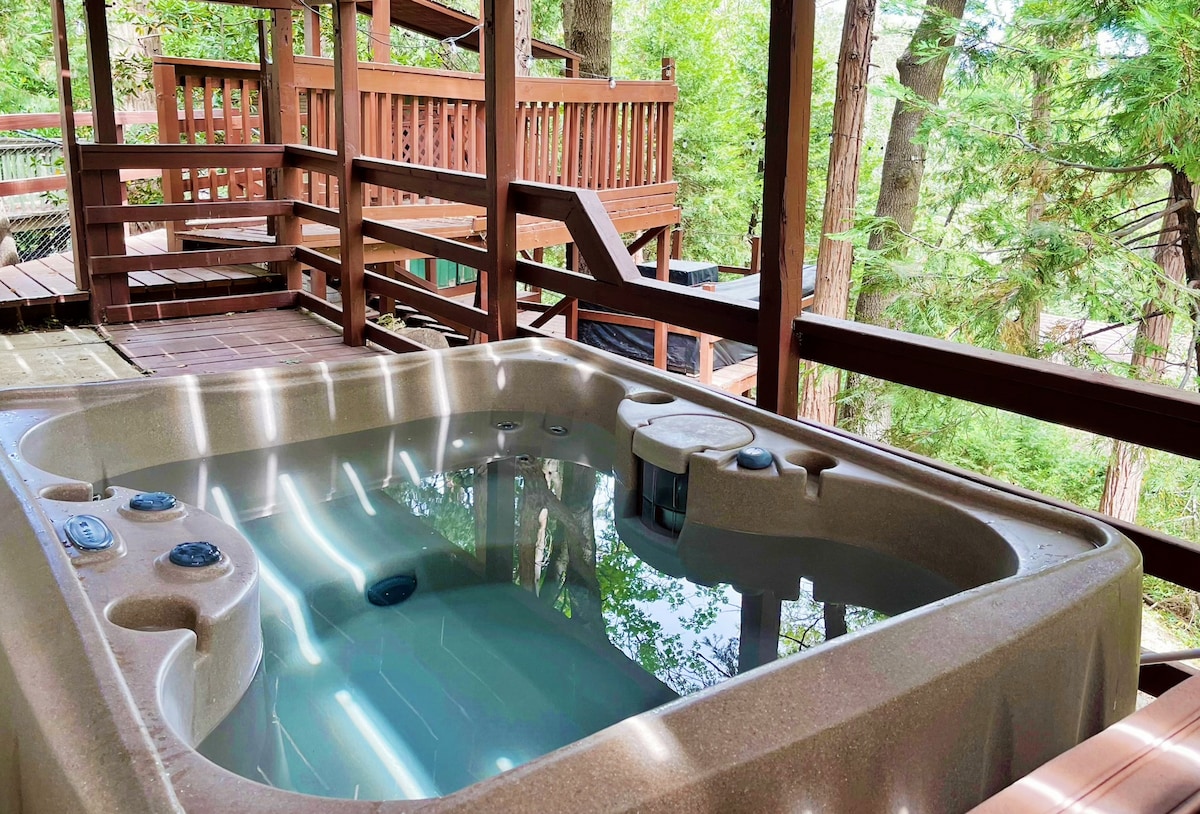 ★ Itinatampok sa Condé Nast Traveler ★ Mag‑enjoy sa Wild Olive Den na parang gawa ng designer. Matatagpuan sa ibabaw ng Running Springs na may malalawak na tanawin, may nakakarelaks na hot tub, EV charger, at 3 magandang deck ang cabin. Perpekto para sa mga pamilya o romantikong bakasyon: 🏔 15 min sa Lake Arrowhead at Snow Valley Ski 🎡 7 min sa SkyPark / Santa's Village 💻 Mabilis na 370 Mbps Wi-Fi 🧸 Kumpleto ang gamit para sa bata (Pack & Play/High chair) + Central A/C at Backup Generator! Magrelaks sa tabi ng apoy o magpatugtog ng vinyl sa record player!