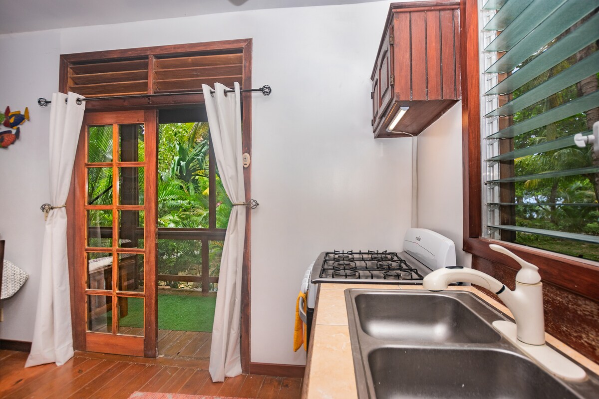 Maliit na Bahay sa Tabing-dagat – Isang Mapayapang Taguan sa IslaTumakas sa Bali-inspired na 2-bedroom, 2-bath beachfront home na ito sa Palmetto Bay, kung saan nagtatagpo ang kagandahan ng isla at modernong ginhawa gamit ang AC at Wi-Fi.Gumising sa huni ng mga alon at lasapin ang kape sa isang pribadong deck na may malawak na tanawin ng dagat.Ilang hakbang lang ang layo mula sa pool, restaurant, at snorkeling, ang payapang lugar na ito ay nag-aalok ng mga tahimik na dalampasigan, nakamamanghang paglubog ng araw, at ang perpektong lugar para sa romansa, pagrerelaks, at mga di-malilimutang alaala sa Roatán.