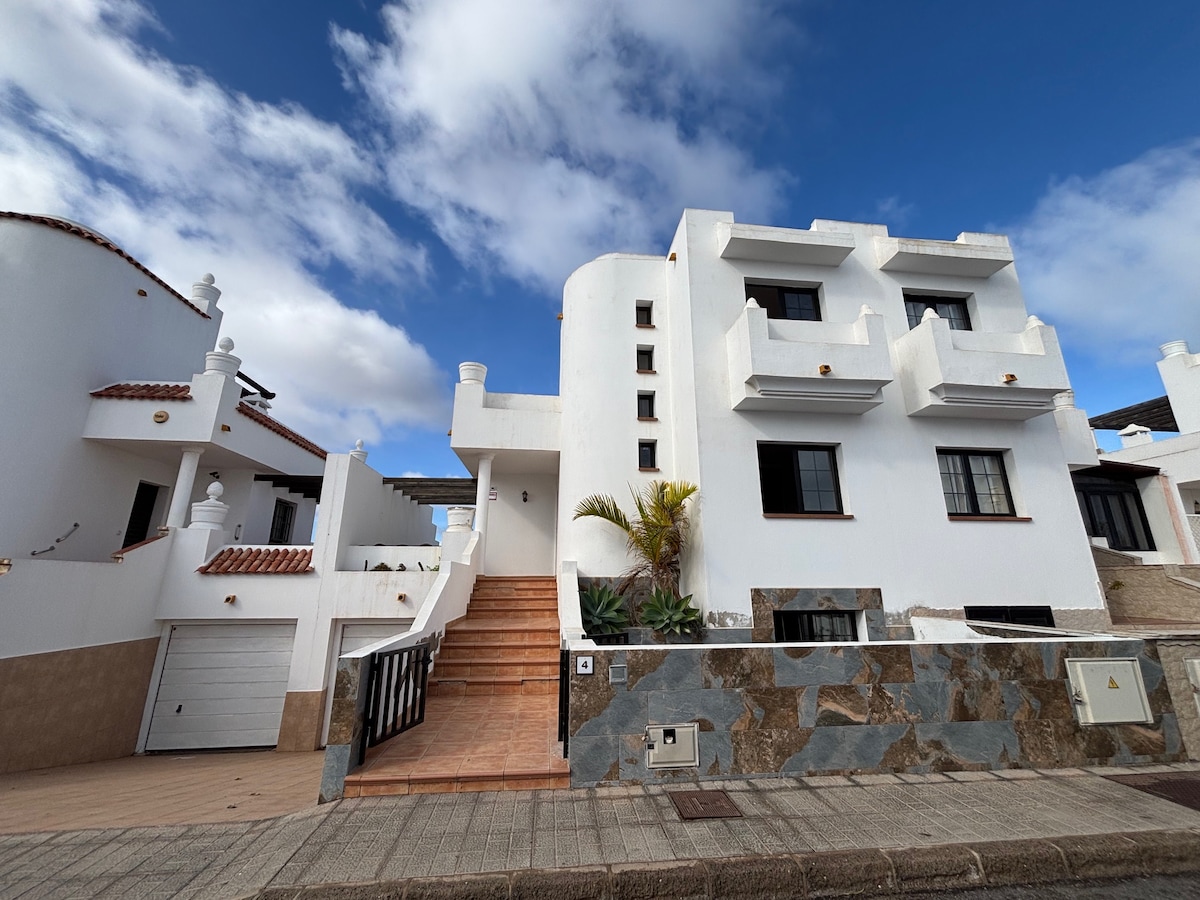 Marangyang villa na may 255m na matatagpuan sa isang lagay ng lupa na 2550m, dalawampung minuto mula sa paliparan, sa daungan ng Corralejo at sa mga lawa ng Cotillo, sampung minuto mula sa magagandang beach ng corralejo. Nakatuon sa silangan na may nakamamanghang tanawin ng karagatan, ang mga sunrises at sunset nito ay apotheous. May moderno at napakaliwanag na dekorasyon. Mainam ito para sa mga mahilig sa kapayapaan at isport ngunit hindi itinatakwil ang kalapitan ng mga sentro ng paglilibang at turismo. Isang lugar para maging isang di malilimutang bakasyon.