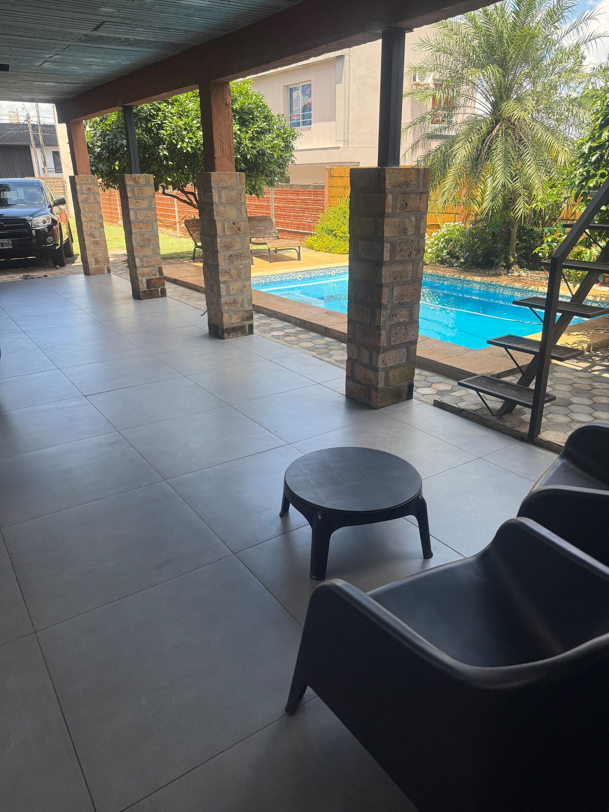 Alojamiento para 12 personas, amplio parque de 2500m2 , totalmente comodo y seguro, 4 habitaciones con AA y tv digital hd, piscina, parrilla y fogonero; ubicado en barrio pescadores a 200mtrs del río. Ideal para descansar en familia.