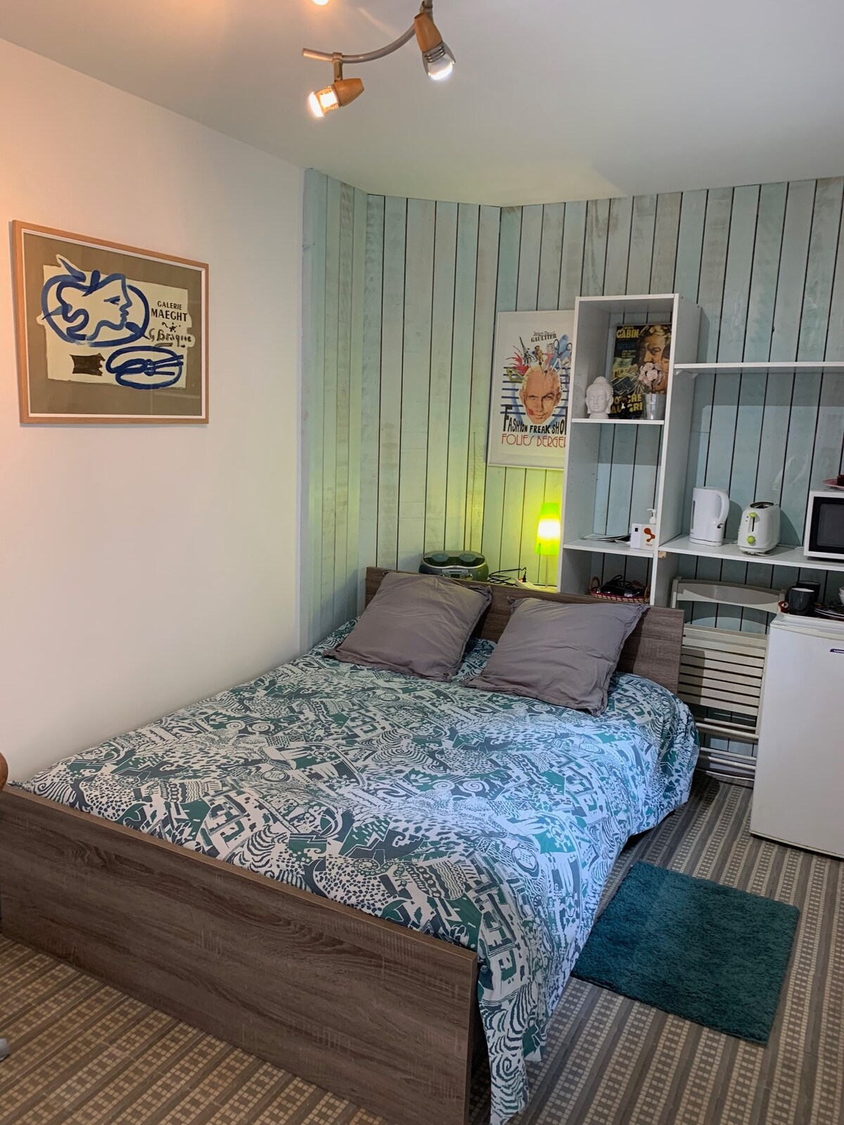 Maaaring tumanggap ang kuwarto ng hanggang 4 na tao. May isang kama (160x200) at isang BZ couch (140x200), takure at mug. Maaaring magdagdag ng dagdag na kuna para sa sanggol. Nagtatampok ang kuwarto ng TV at banyong en suite at nilagyan ng maluwag na shower at lababo. Magkakaroon ka ng direktang access sa nakapaloob na hardin, para ma - enjoy ang labas. Available ang pribadong paradahan para sa iyong paggamit.