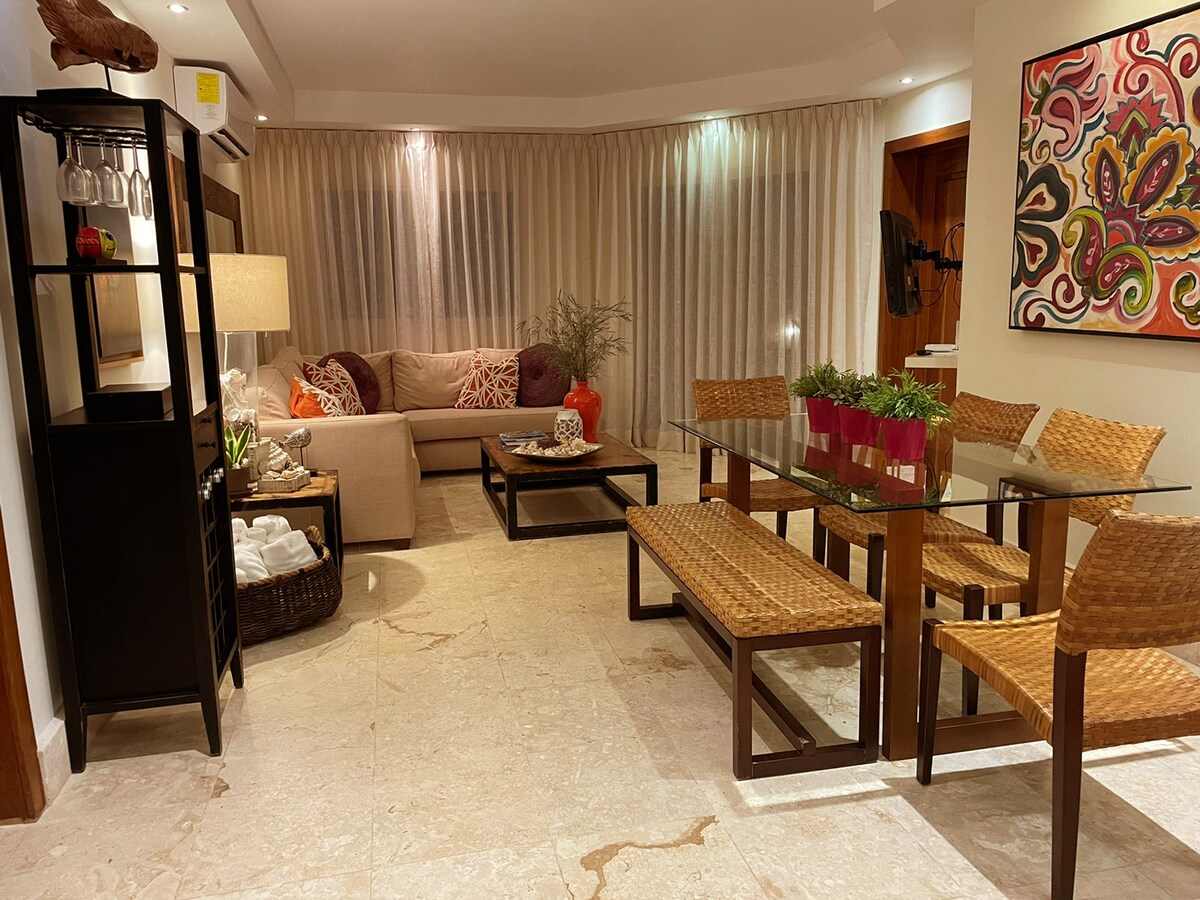 Maghandang masiyahan sa isang mapangarapin na karanasan sa isang modernong studio apartment na perpekto para sa mga mag - asawa o pamilya na may 2 bata na 100 metro mula sa Playa Bonita sa pinaka - eksklusibong tirahan ng Terrenas "PLAYA BONITA BEACH RESIDENCES " sa proyekto ng LAKEVIEW kung saan masisiyahan ka sa magandang tanawin ng lawa, pribadong gazebo, swimming pool, tennis court, mga larong pambata, clubhouse na may gourmet restaurant, bar, jacuzzi , swimming pool, magagandang hardin na nakaharap sa pribado at tahimik na beach.
