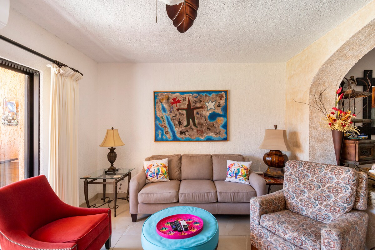 Looking for a relaxing getaway to Cabo? Quinta Pacífica is your spot! This two bedroom condo is in a beautiful gated community of only 16 townhouses with two fantastic family friendly pools. And the best part? It's just a few steps from the beach, San José del Cabo's hotel strip and downtown. Enjoy walking in the area, relaxing in it's spacious terrace with gorgeous view of Vidanta's Golf Course, or just sit back and listen to the ocean breaking waves at night. Book 6 nights and get 1 FREE!