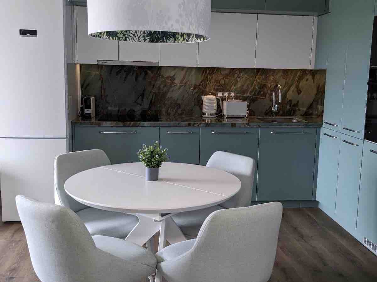 We offer you a large flat with 2 bedrooms and a study, two bathrooms and a yard where you can spend a wonderful time with your family. The flat has everything you need for a comfortable stay. It is located in a beautiful complex with several swimming pools, one of them heated, one pool has a bar which is located inside the pool, gym and sauna. A workroom will be an addition for you if you need to work. Near the complex you will find many cafes and restaurants and a large shopping centre.