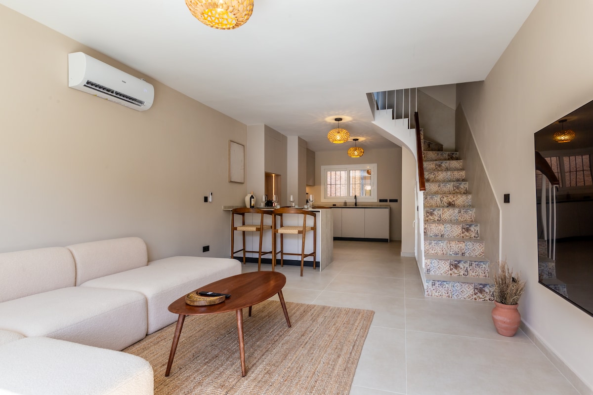 Maligayang pagdating sa aming chic 3 - bedroom townhouse sa Belen Beach's Saladillo - Benamara urbanization. Nag - aalok ang maliwanag na hiyas na ito ng 3 pribadong terrace, ensuite na paliguan sa bawat silid - tulugan, kumpletong kusina, A/C, Wi - Fi, bagong inayos na pool (Hunyo 2025), at espasyo sa garahe sa ilalim ng lupa. Ilang hakbang lang mula sa beach, ito ang perpektong timpla ng nakahandusay na luho at kaginhawaan sa baybayin - ilang minuto lang mula sa Estepona at Puerto Banús.