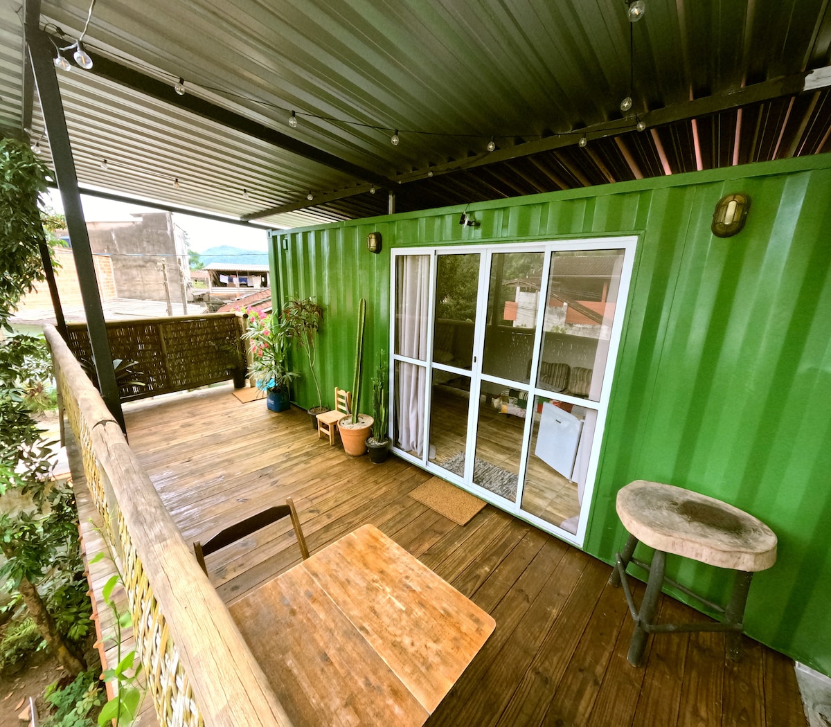 Isa itong kaakit‑akit, komportable, at pribadong container suite na may balkonaheng nakaharap sa Atlantic Forest kung saan maririnig mo ang mga ibon sa umaga. 200 metro lang ang layo nito sa highway, kaya madaling makakapunta sa mga beach at downtown ng Ubatuba. Maaliwalas, praktikal, at komportable ito. Mainam ang tuluyan para sa mga mag‑asawa at para sa mga naghahanap ng pahingahan, malapit sa kalikasan, at kakaibang karanasan sa pamamalagi. Handa akong tumulong sa anumang kailangan.