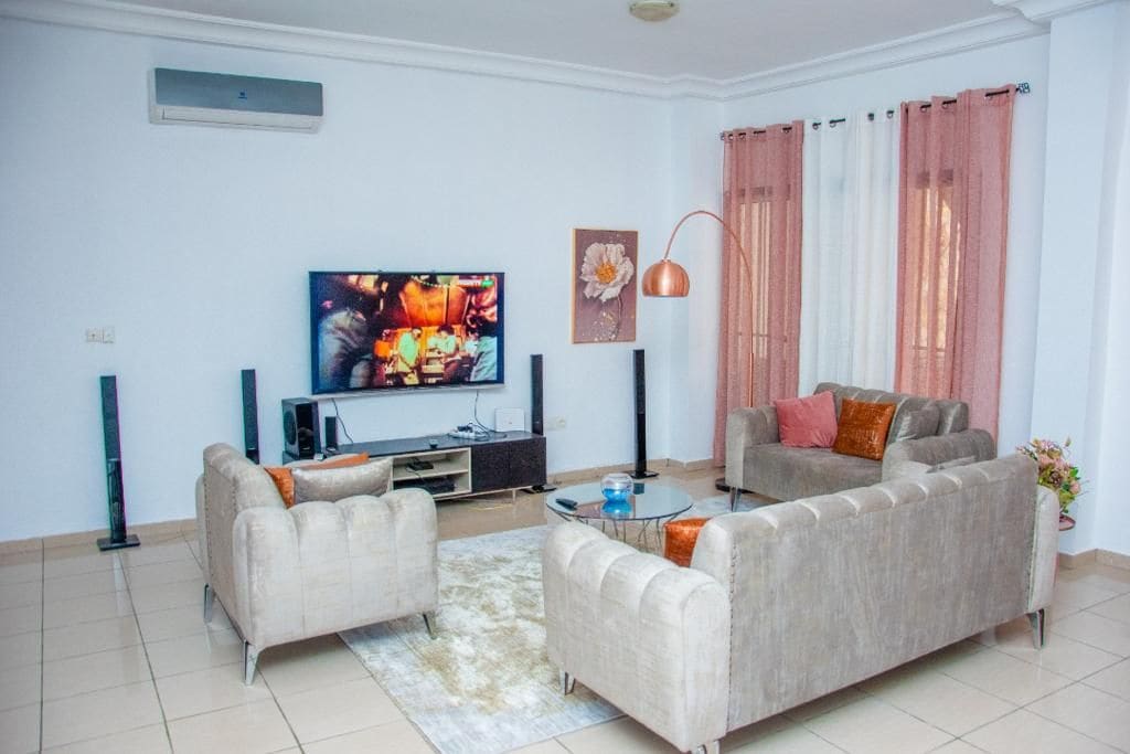 Vous cherchez un endroit discret et securise pour vos vacances a Abidjan,eh bien!Abidjan Sejour vous offre un cadre ideal et convivial pour votre sejour. Nous mettons a votre disposition dans une residence une ou deux chambres salon a un prix imbattable ou vous vous sentirez chez vous.Dans un environnement calme ,paisible et securisé,parking interne et externe,vigile 24h/24,CCTV,LG UHD TV 65 inches, accessible aux commerces .