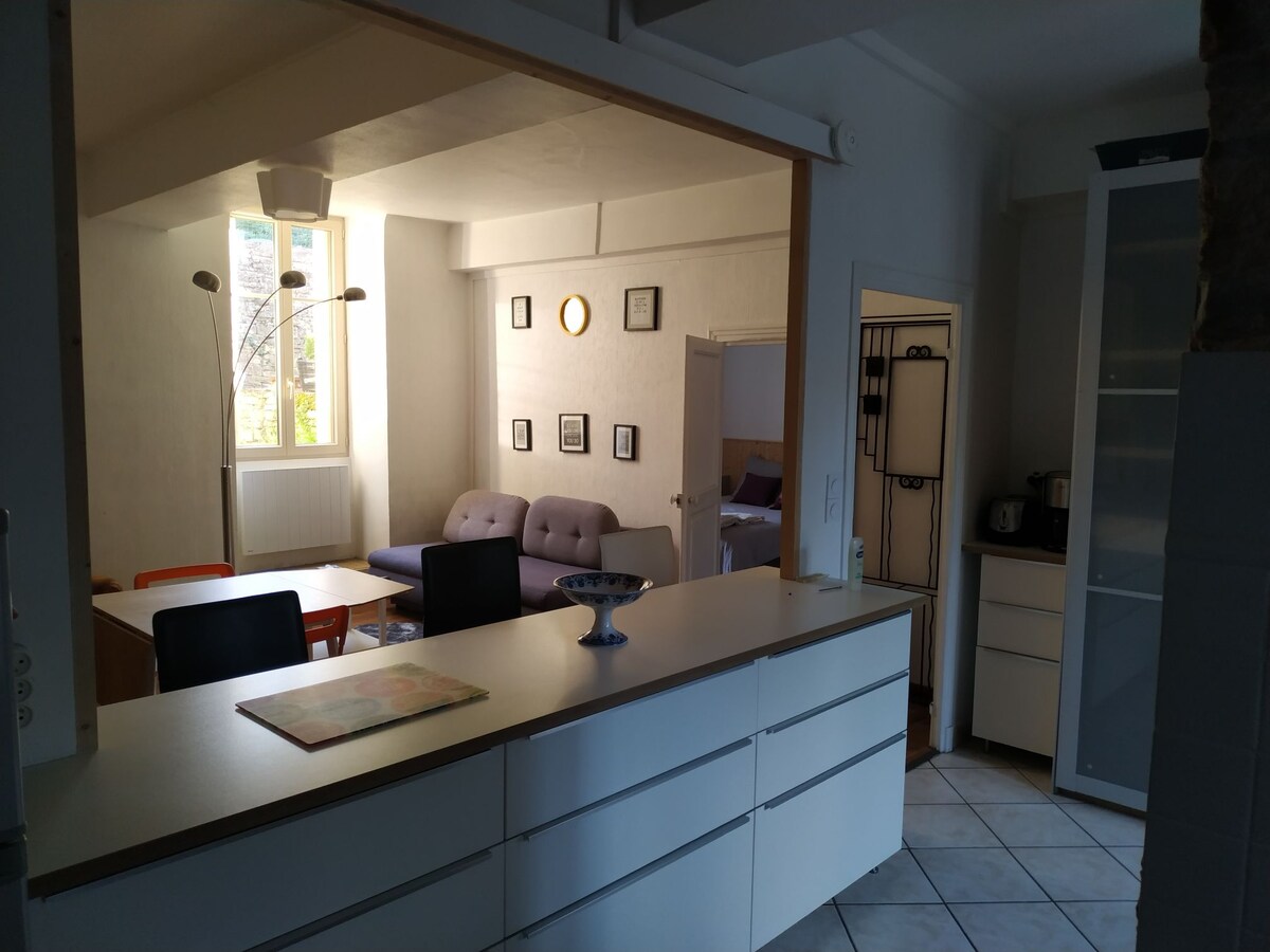 Maligayang pagdating sa La Feuillé! Matatagpuan sa gitna ng kabisera ng mga Duke ng Burgundy, sa unang palapag ng isang tahimik na condominium, maaakit ka ng apartment sa kagandahan nito. Nasa sentro ka ng lungsod, malapit sa lahat ng amenidad at interesanteng lugar. May 2 malalaking kuwartong may magagandang volume ang tuluyan, na may kasamang banyong may hiwalay na toilet, at kusinang kumpleto ang kagamitan. Umaasa kaming magkakaroon ka ng kaaya - ayang pamamalagi dito. Hélène & Rémi.