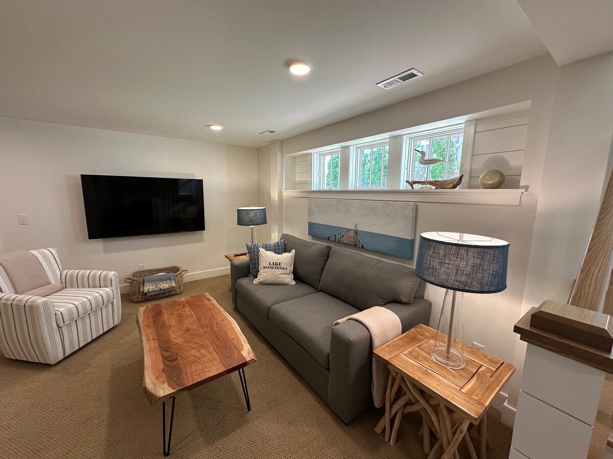 Simula Abril 1, 2026: 30 araw na minimum na pamamalagi. Magpadala ng mensahe para sa mga detalye. Magandang na-renovate na duplex ng Pillar Homes. Gantimpalaang 3BR main-and-lower-level unit na may dalawang main-floor na silid-tulugan at isang lower-level na silid-tulugan. Dalawang kumpletong banyo at maliwanag na kusina na may matibay na ibabaw at mga stainless na kasangkapan. Temang pandagat na may sahig na hardwood at gas fireplace. May kasamang garahe na pang‑dalawang kotse. Mga tanawin ng Lake Minnetonka. Maglakad papunta sa Wayzata beach, mga tindahan, at mga restawran. Kung hindi available, tingnan ang listing sa mas mataas na palapag.