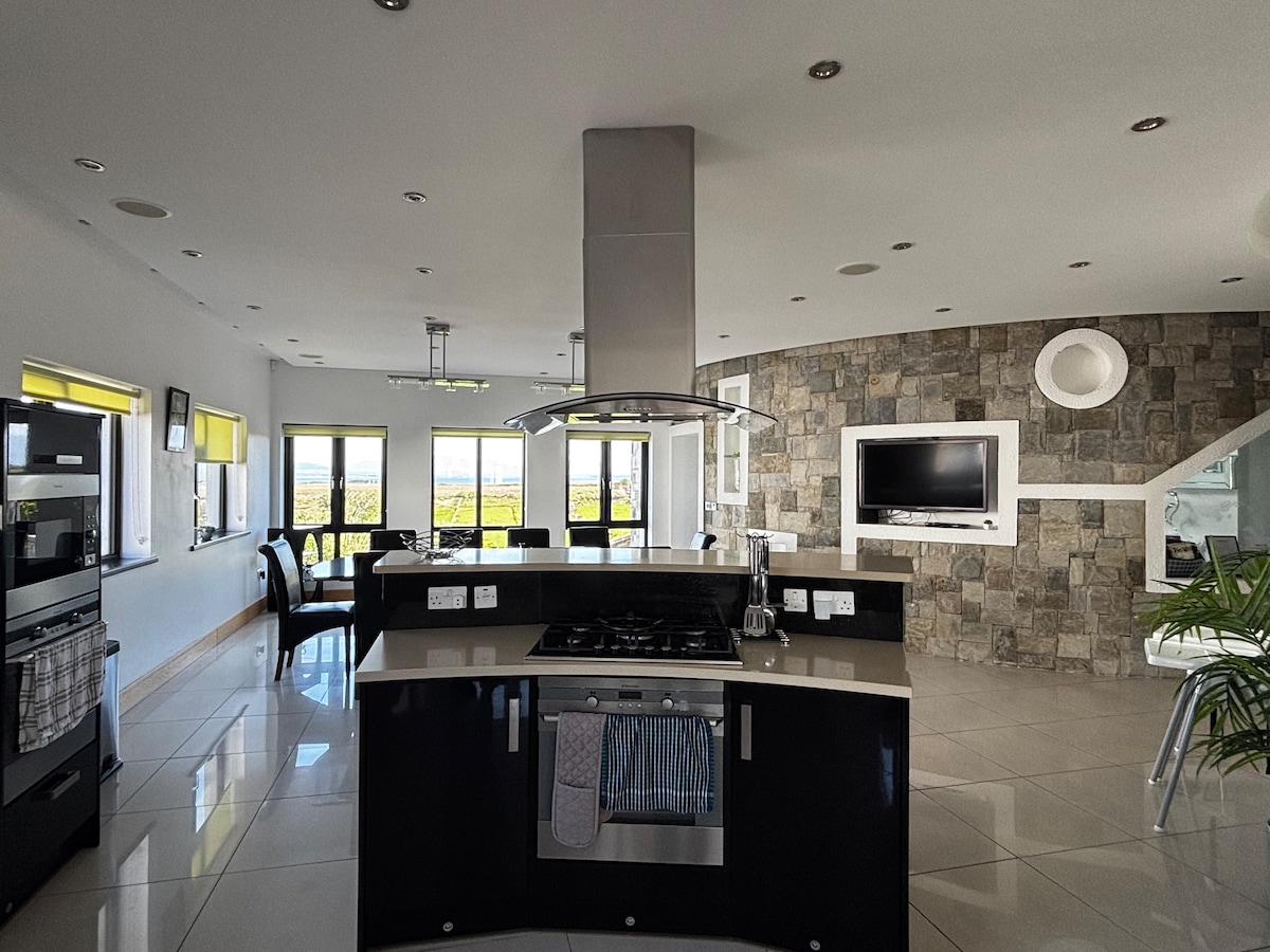 Tangkilikin ang natatanging pahinga sa maliwanag at modernong first - floor apartment na ito, sa pampang ng River Moy sa Foxford village. Magbahagi ng mga inumin sa gabi sa balkonahe sa gilid ng ilog, o panoorin ang mga rapids sa pamamagitan ng glass wall ng sala. Kamakailang muling pinalamutian ng mga fitting na may kalidad ng hotel, mayroong dalawang mahusay na iniharap na double bedroom, dalawang banyo, at isang malaki, open - plan na living space. Ang 67 Mbps wifi ay perpekto para sa malayuang pagtatrabaho, na may paglalakad sa ilog at makasaysayang Foxford Woollen Mills sa tabi mismo ng pinto.