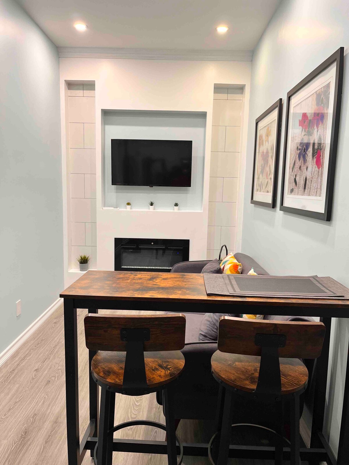 Maaliwalas at pribadong 1-bed studio, perpekto para sa maikli o mahabang pamamalagi, kumpleto ang kagamitan para sa kaginhawaan at pagpapahinga. ✔︎ Maluwang na pribadong suite na may kumpletong banyo ✔︎ 55-inch 4K TV na may Netflix, Prime, Crave, Fibe TV, YouTube, atbp ✔︎ Super Fast WiFi ✔︎ Sariling pag - check in ✔︎Workstation ✔︎ 5 minutong biyahe - 401, Downtown, Mga mall, Grocery, Botika, Mga restawran, Cineplex. ✔︎ Libreng Paradahan sa driveway ✔︎ May Washer at Dryer sa Unit ✔︎ Kitchenette - Palamigan, Microwave, Kettle, Toaster, Coffee maker, mga kagamitan at kagamitan.