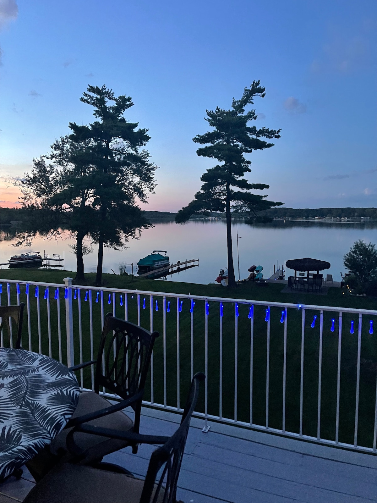 Matatagpuan sa maliit na cove sa malaking lawa ang waterfront cottage na ito na kumpletong na‑renovate. Mayroon itong 66' na pribadong baybayin; nakataas na front deck at side patio; at stone bonfire pit at gas BBQ grill. Makakagamit din ang mga bisita ng pontoon boat, 2 kayak, at paddle boat nang LIBRE at eksklusibo, at may pribadong pantalan (simula Mayo hanggang katapusan ng Oktubre, depende sa lagay ng panahon). Tinatanggap ng Swan Cottage ang mga aso. Walang bakod ang bakuran, pero nagbibigay kami ng mga poste at cable tie.