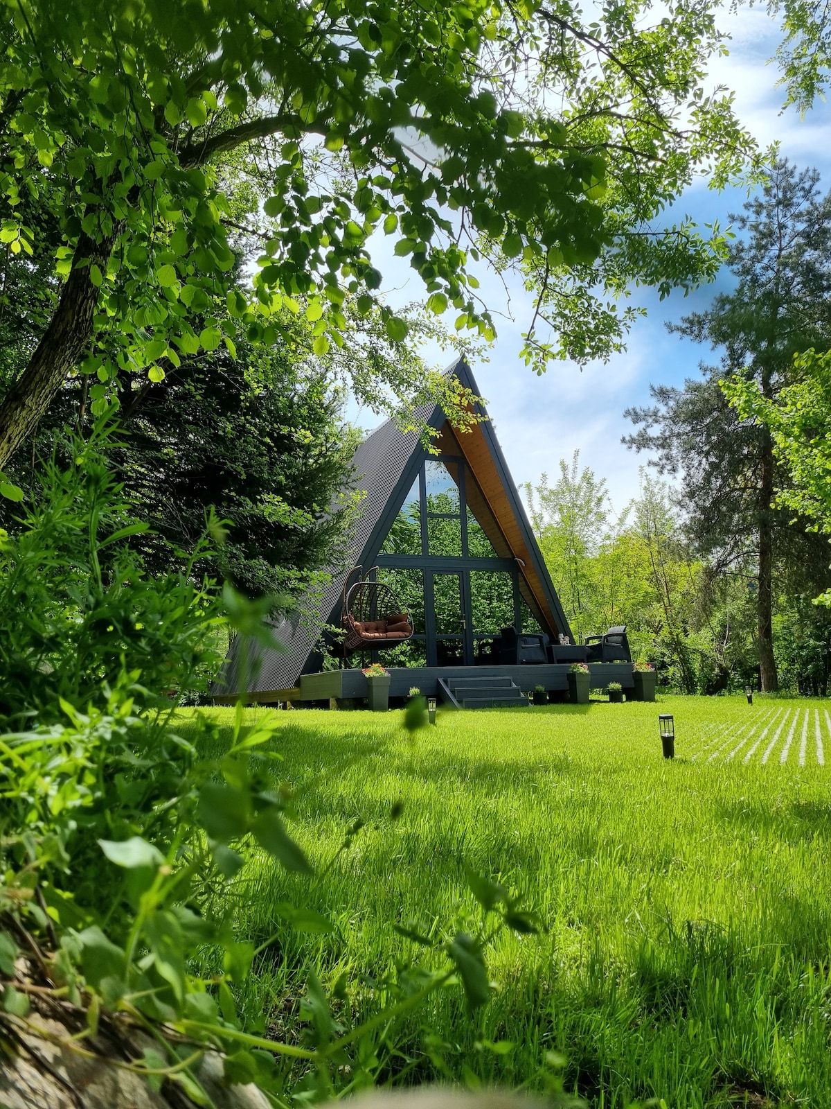 May bagong A - Frame Cabin na malapit sa Sibiu sa gitna ng Transylvania na naghihintay na masiyahan ka rito! Mayroon itong 2 silid - tulugan na may pribadong banyo, malaking sala na may kusinang kumpleto sa kagamitan, malaking terrace na may komportableng lounge at barbecue at hot tube. Bumalik at magrelaks sa tahimik at naka - istilong tuluyan na ito.