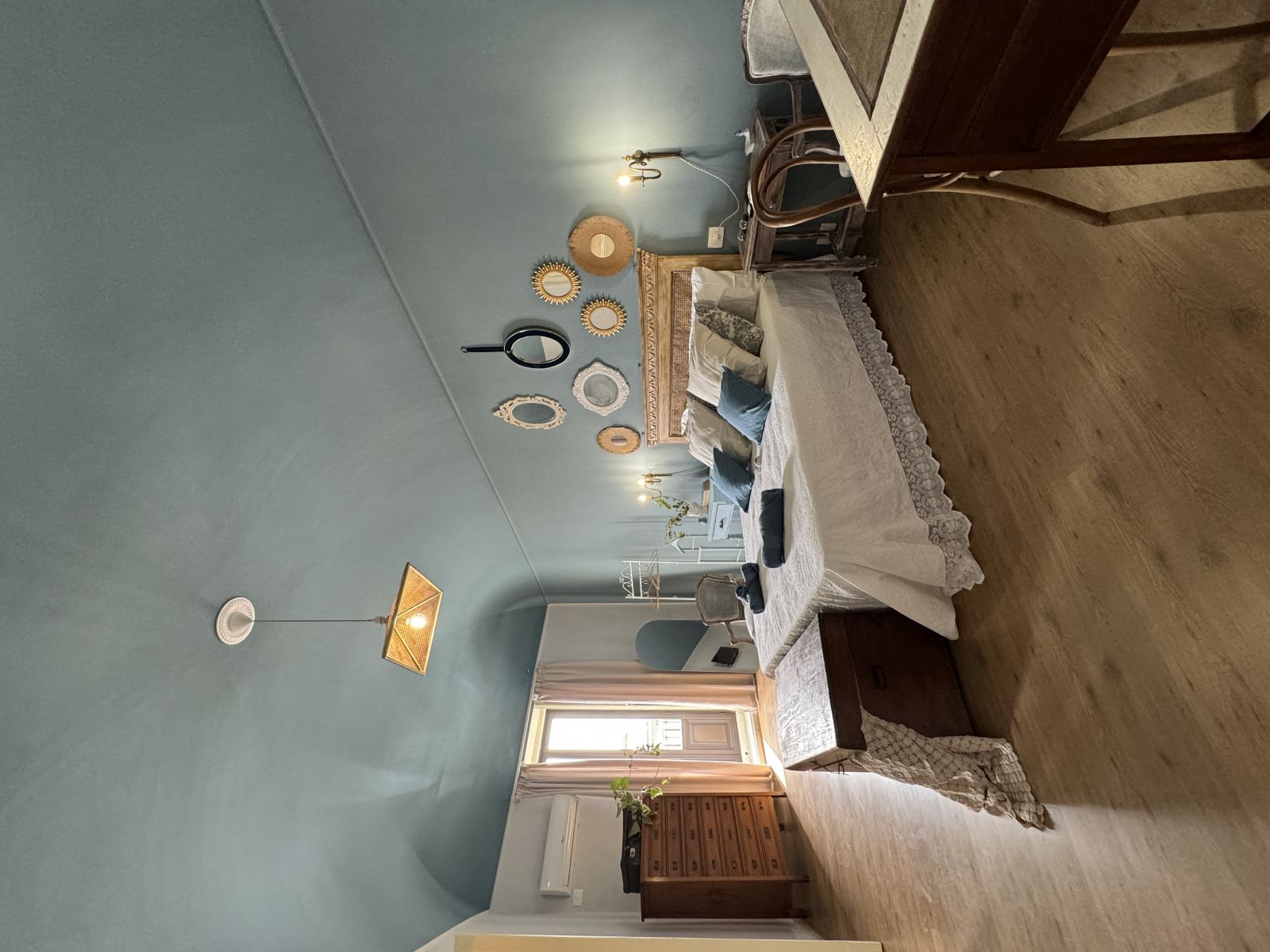Kahanga - hangang bukas na espasyo ng 45 square meters na malaki at komportable sa maliit na kusina (kalan, oven, refrigerator, lababo, pinggan, baso, kaldero, atbp.), aparador, dibdib ng mga drawer, bedside table, malaking banyo, air conditioner, maliit na terrace na may mesa na tinatanaw ang swimming pool at ang kaakit - akit na hardin kung saan maaari mong tangkilikin ang katahimikan ng lugar habang humihigop ng masarap na alak.