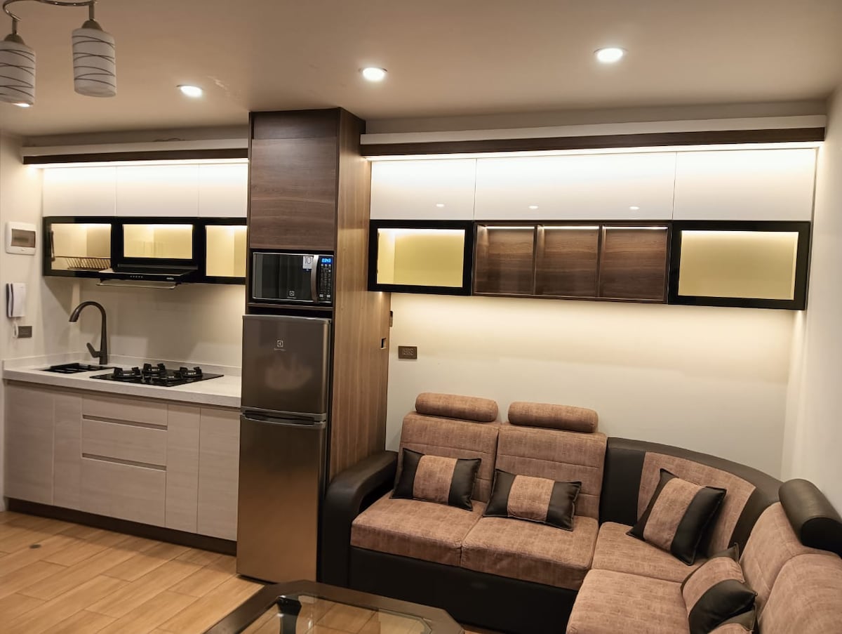 Masiyahan sa premiered na tuluyan na ito sa Cayma, 10 minuto ang layo mula sa sentro ng Arequipa. Matatagpuan sa isang ligtas na condominium, nag - aalok ito ng gym at aerobics room. Nagtatampok ang kuwarto ng queen bed, aparador, at de - kalidad na kagamitan para sa perpektong pahinga. Buong banyo at may perpektong kagamitan. Ang sala at maliit na kusina, na may mainit na tono at modernong estilo, ay nagbibigay ng pagkakaisa at kaginhawaan. Bukod pa rito, ang pribadong balkonahe nito ay nagbibigay - daan sa iyo na matamasa ang magagandang tanawin at ang sariwang hangin ng Arequipa