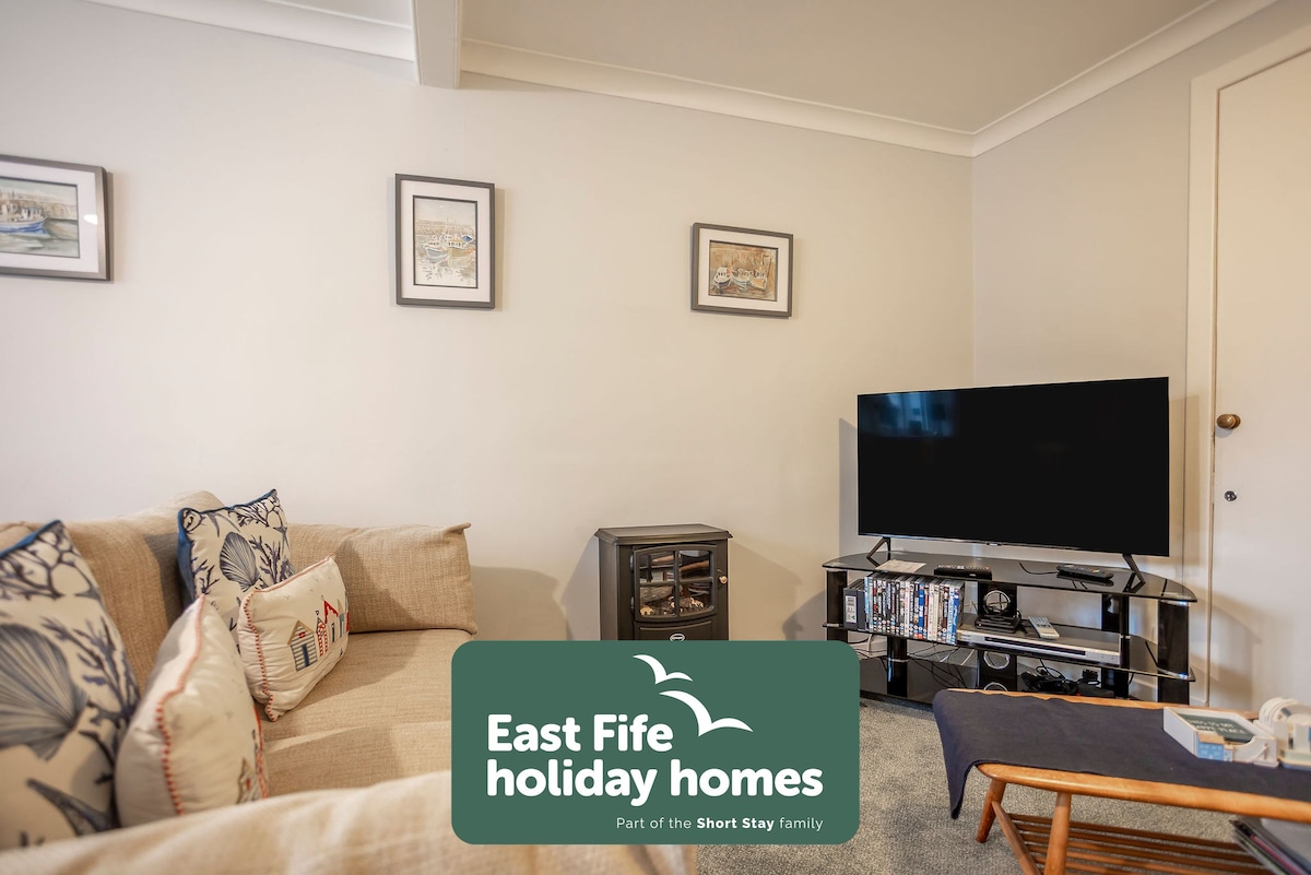 Ground floor cosy self catering flat in the beautiful fishing village of St Monans. There is a wood burning stove, a well equipped kitchen with washing machine ,fridge freezer, gas hob and electric oven. The bathroom has a deep bath with an over bath shower and to keep your feet cosy under floor heating and a heated towel rail. There is a double bedroom and a sofa bed which sleeps two people in the living room. Bring your four legged friend as we are doggy friendly.